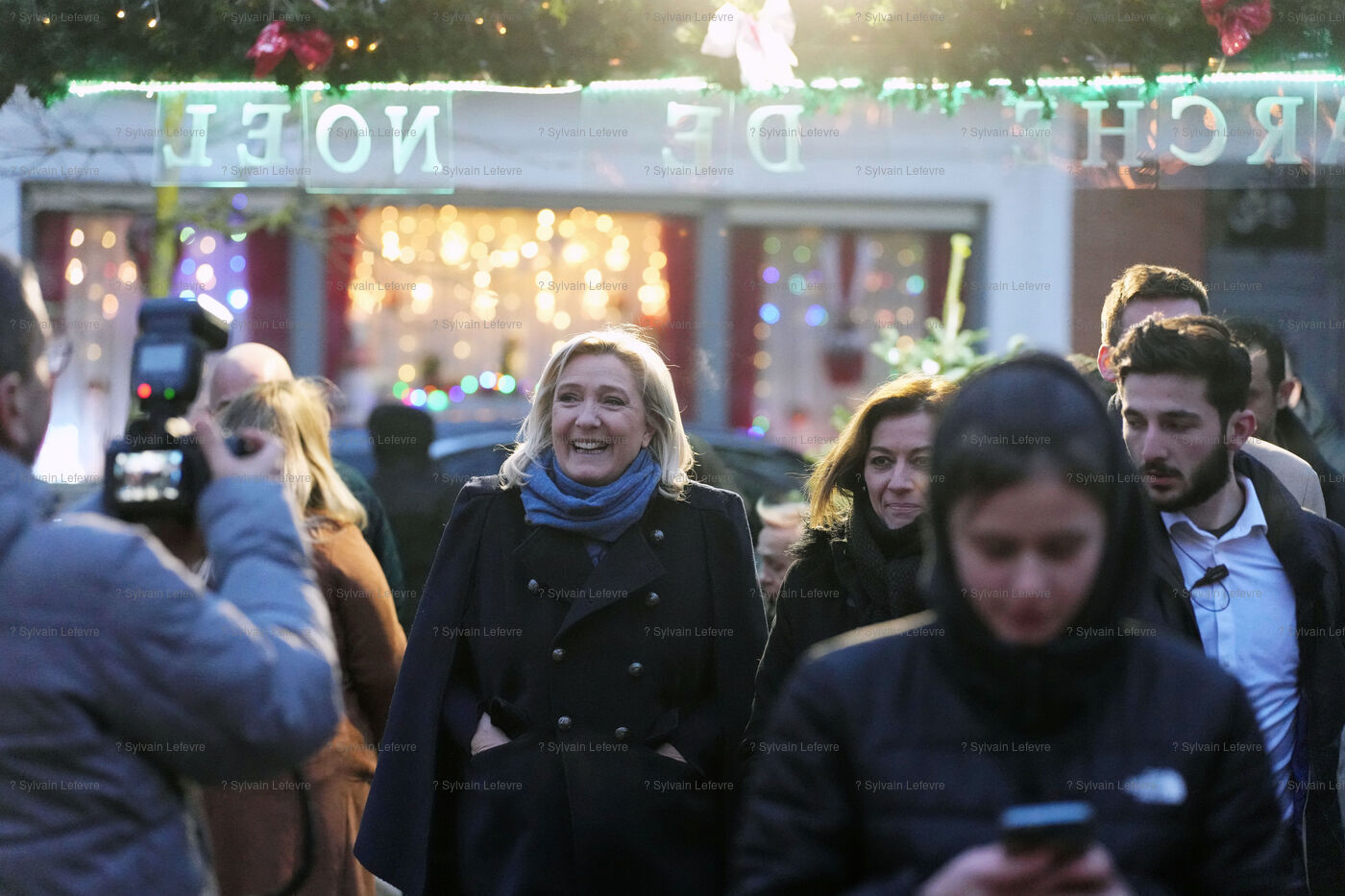 French far-right "National Rally" deputy Marine Le Pen visits Christmas market in Dourges, Pas-de-Calais, France, Dec. 04, 2022