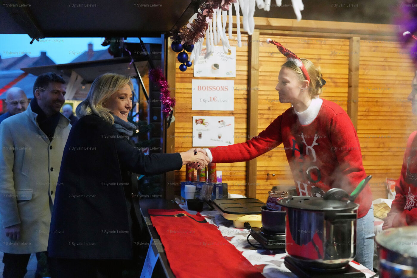 Marine Le Pen visite le marché de Noël à Dourges