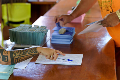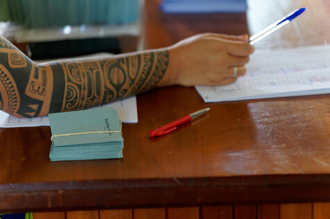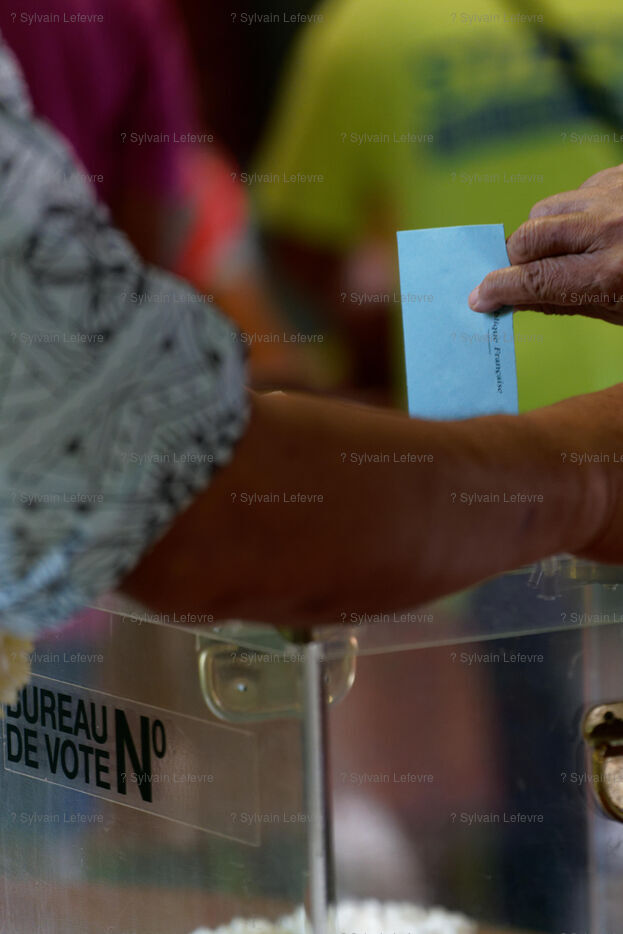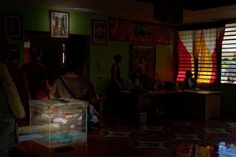 Jour de vote pour le premier tour des élections législatives à Hakahau, dans l'archipel français d'outre-mer des îles Marquises en Polynésie française, le 29 juin 2024. Les Français d'outre-mer se sont rendus aux urnes le 29 juin 2024 pour le premier tour des élections législatives les plus suivies de l'histoire récente, à la veille d'un scrutin en France métropolitaine qui pourrait ouvrir la voie à l'arrivée au pouvoir du Rassemblement national.