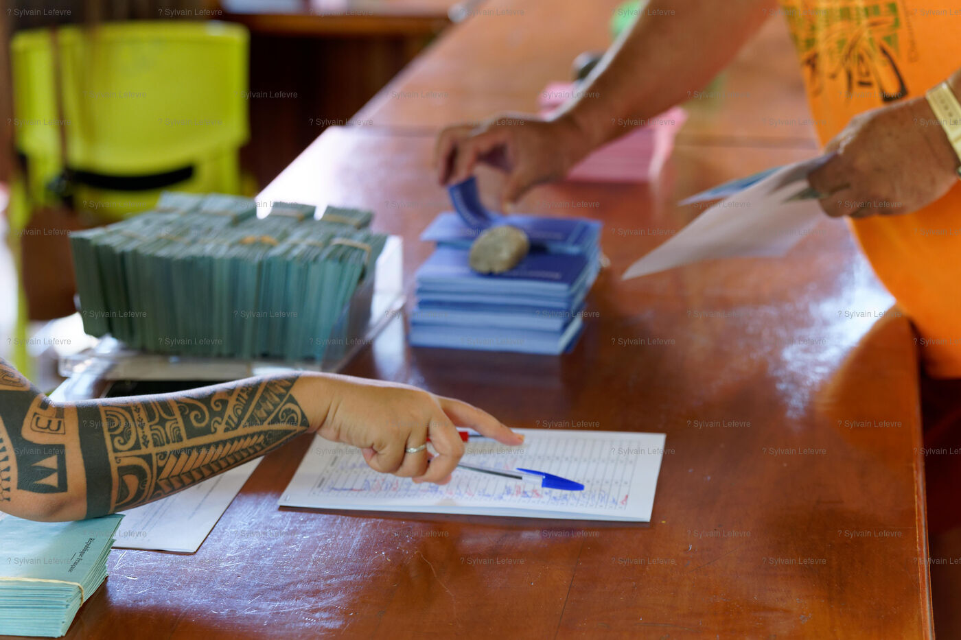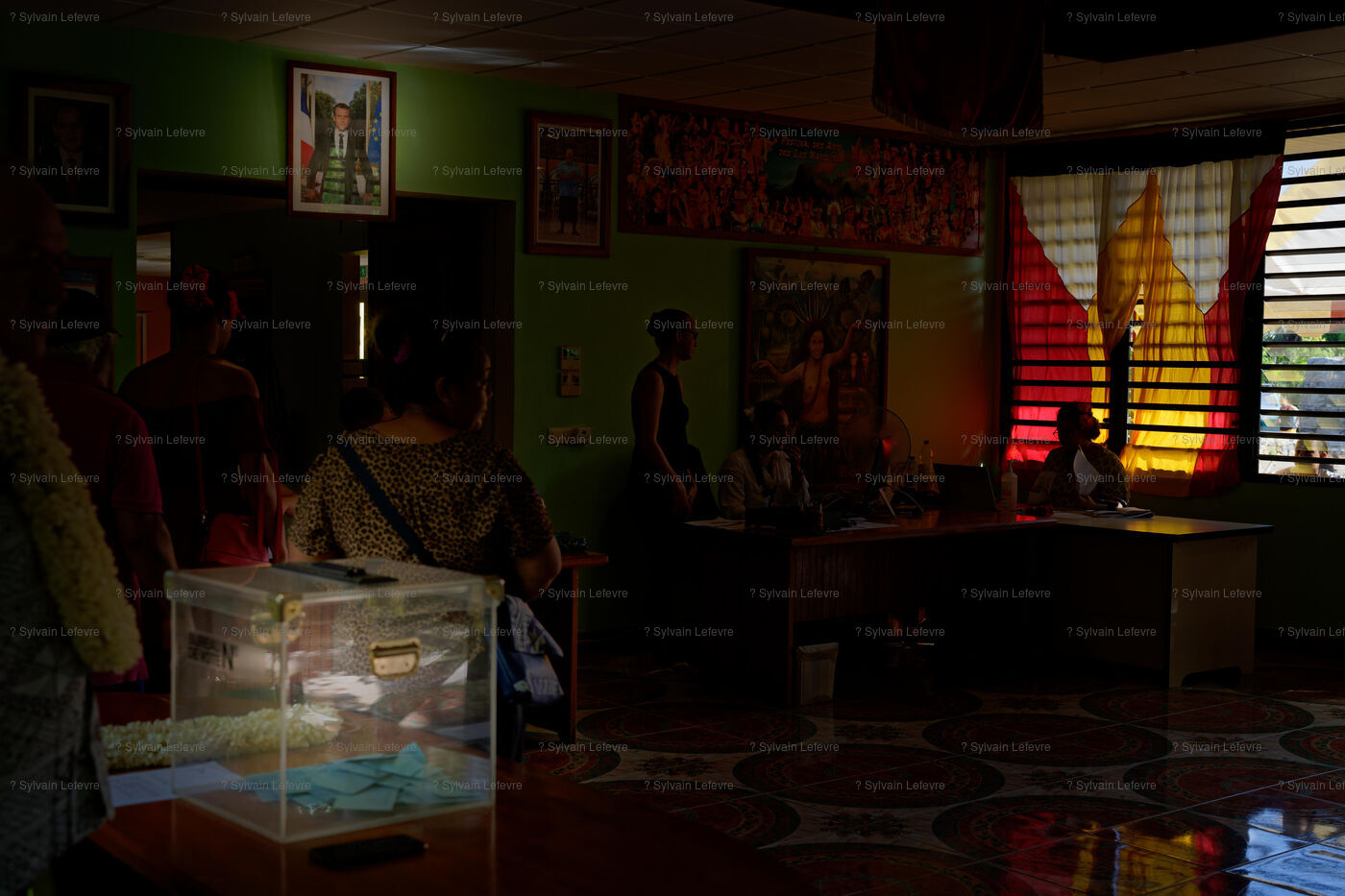 Polling station for the voting day for the first round of parliamentary elections in Hakahau, in the French overseas archipelago Marquesas Islands in French Polynesia, on June 29, 2024. French overseas voters went to the polls on June 29, 2024, for the first round of the most closely watched legislative elections in recent history, on the eve of a vote in mainland France that could pave the way for the Rassemblement National to come to power.