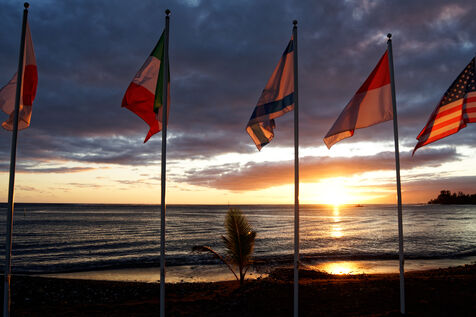 FRANCE - OLYMPIC GAMES PARIS 2024 - POLYNESIA - SUNSET AT OLYMPIC SITE OF TEAHUPO'O