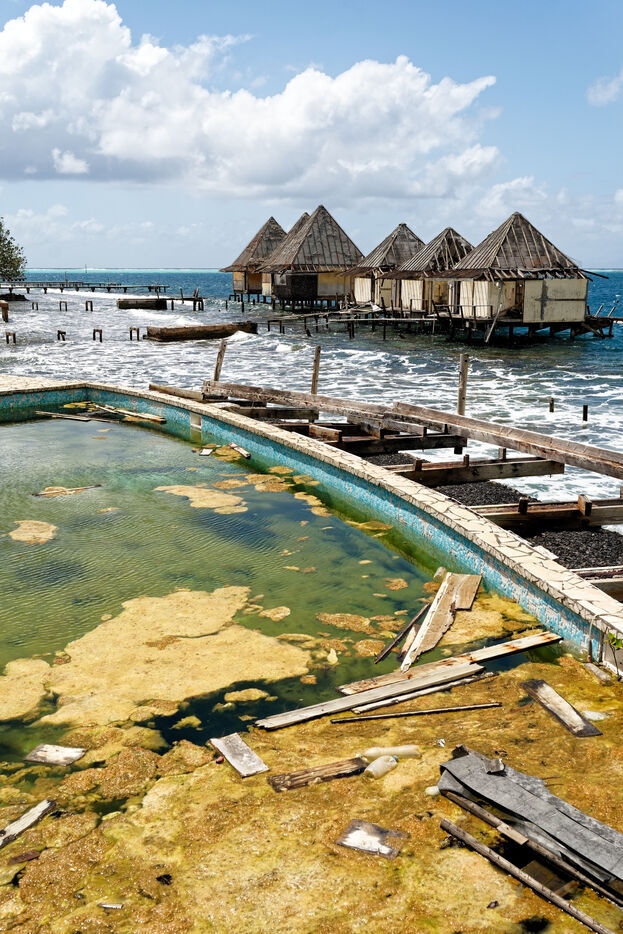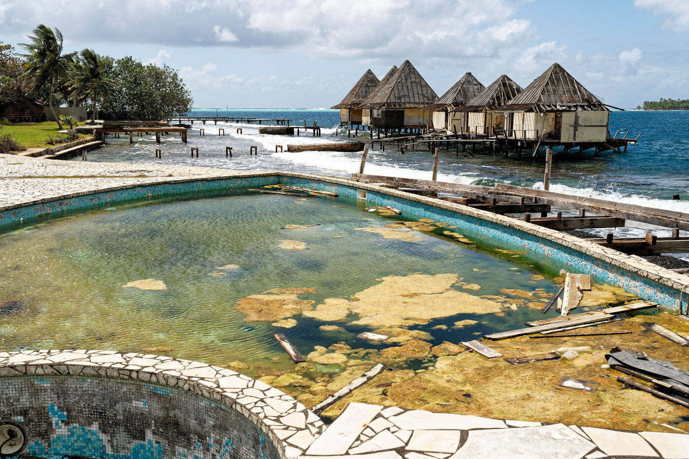 After a fire in the early 90s, the Bali Hai was sold and became the Hawaiki Nui Hôtel. But in March 2015, the hotel, then owned by the Tahiti Nui Travel group, then headed by Franck Falletta, closed its doors and has since been abandoned. Some of the unsafe bungalows have been razed by the town council, which now owns the land, while the rest of the hotel is deteriorating under the onslaught of the waves.