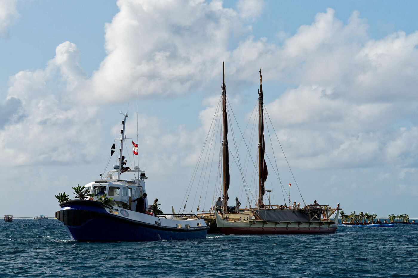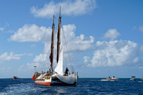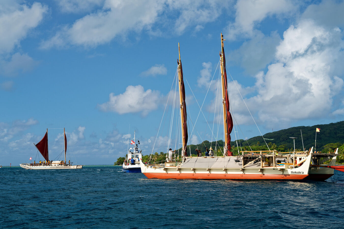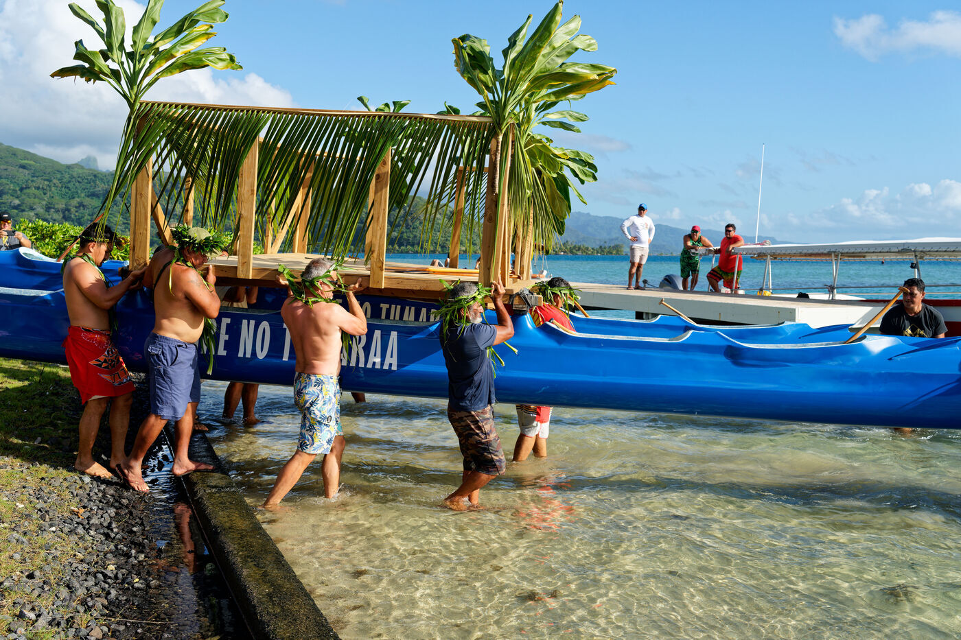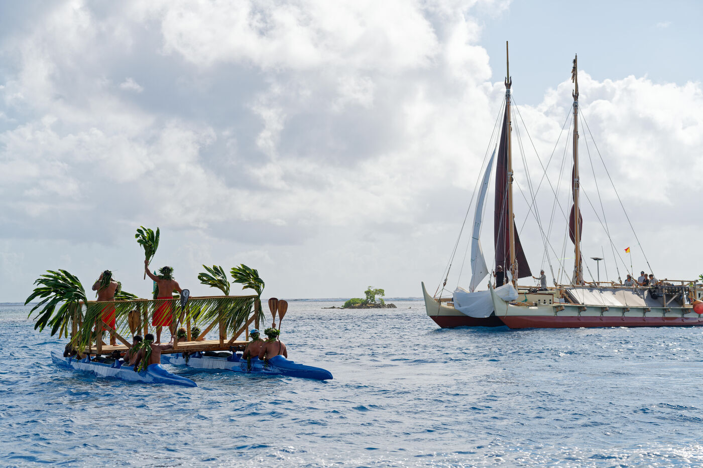 Les équipages ont été célébrés par des cérémonies de pierre et d'awa sur le Marae Taputapuātea, en hommage au site sacré et à leurs ancêtres polynésiens.
