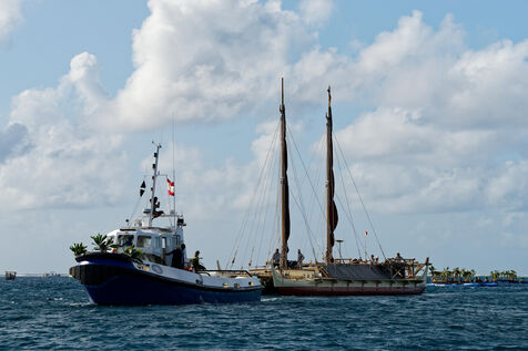 Les pirogues de voyage polynésiennes Hōkūle'a et Hikianalia sont arrivées mardi 24 juin 2025 à Ra'iātea, une île située au nord-ouest de Tahiti. Les pirogues sont arrivées à Marae Taputapuātea à Raʻiātea à 9 heures du matin, au terme d'un voyage de trois semaines depuis leur point de départ à Hilo, à Hawaï.