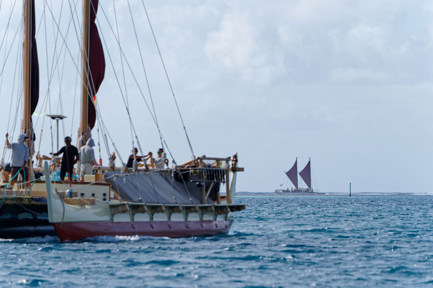The crews were celebrated with stone and awa ceremonies on Marae Taputapuātea, honoring the sacred site and their Polynesian ancestors.