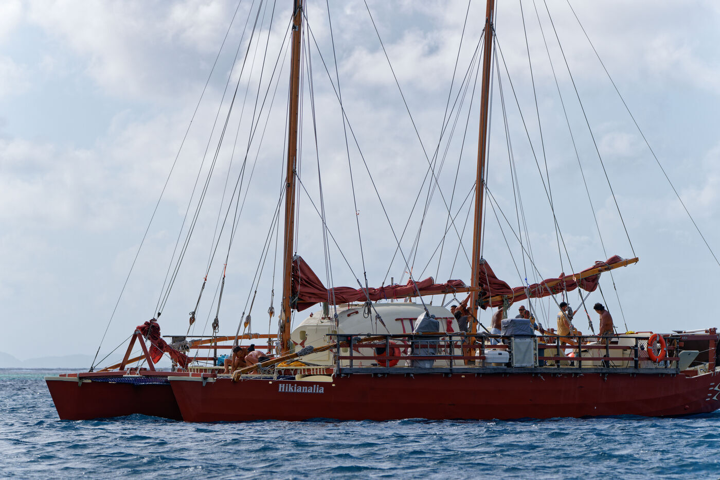 Polynesian Voyaging canoes Hōkūle’a and Hikianalia arrived Tuesday June 24th, 2025 on Ra’iātea, an island north-west of Tahiti. The canoes arrived off shore at Marae Taputapuātea in Raʻiātea at 9 a.m., completing a three-week voyage from their departure point in Hilo, Hawai’i.