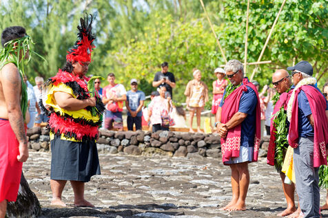 Les équipages ont été célébrés par des cérémonies de pierre et d'awa sur le Marae Taputapuātea, en hommage au site sacré et à leurs ancêtres polynésiens.