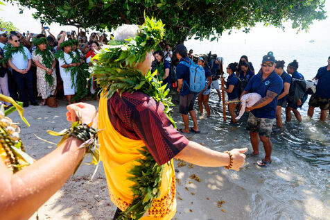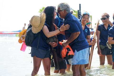 Hundreds gathered to greet the voyaging crews and the arrival ceremony. The crews were granted permission to enter Teava Moa; the sacred passage in to Raʻiātea. From there, paddlers were seen transporting crew members to shore.