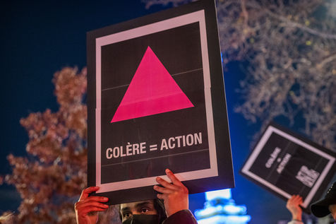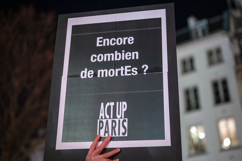 Demonstration for the world AIDS Day, organised by Act Up Paris. The AIDS activist association called for mobilisation: "Facing sanitary precariousness, community response". Place de la Bastille, 1 December 2021.