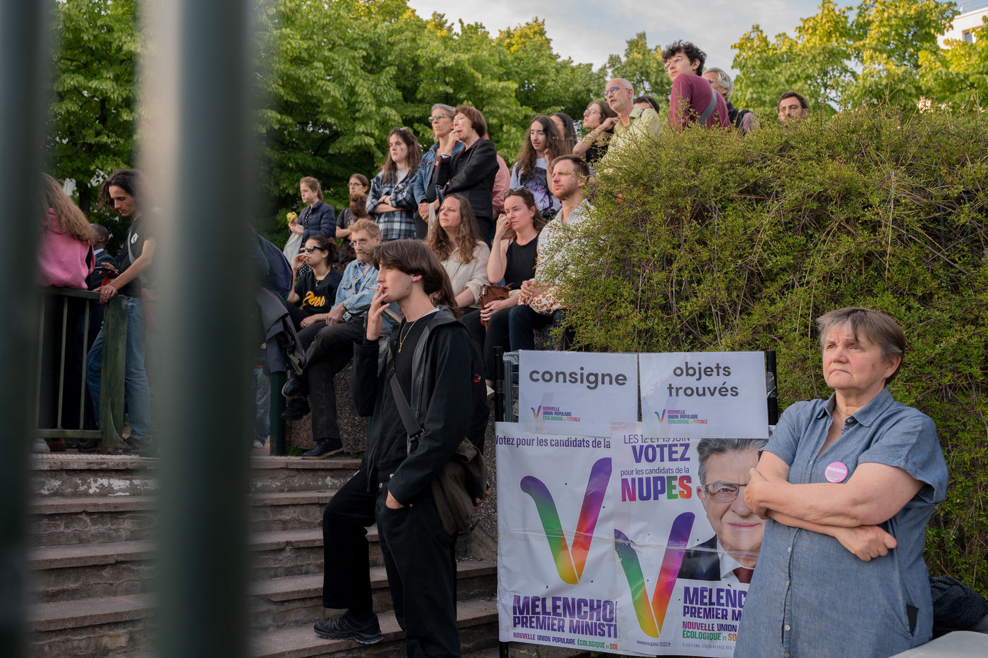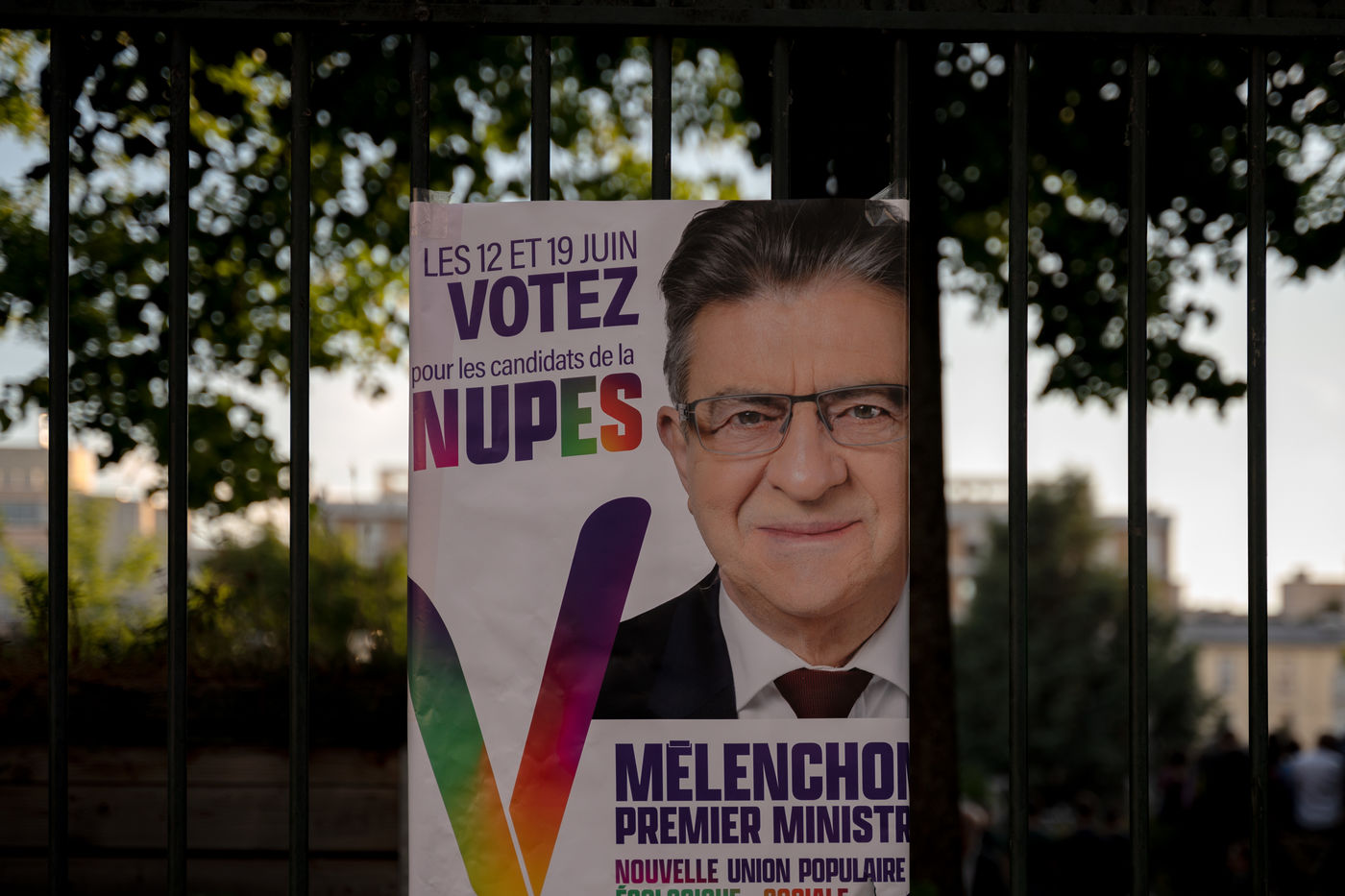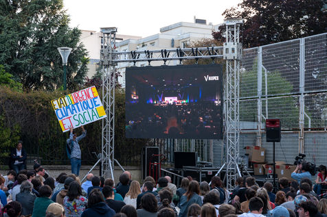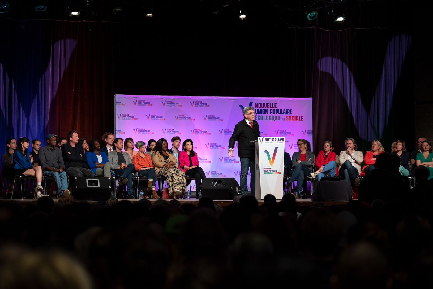 Meeting of the Nouvelle Union populaire ecologique et sociale (NUPES) with Jean-Luc Melenchon, on 1 June 2022, in the Salle Olympe de Gouges (11th arrondissement of Paris).