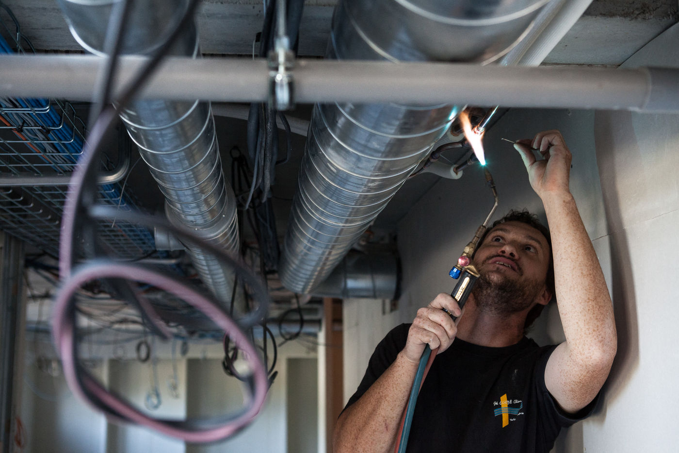 Pictures of the construction sites, warehouses and offices of the plumbing and heating company Corbé Climatique.