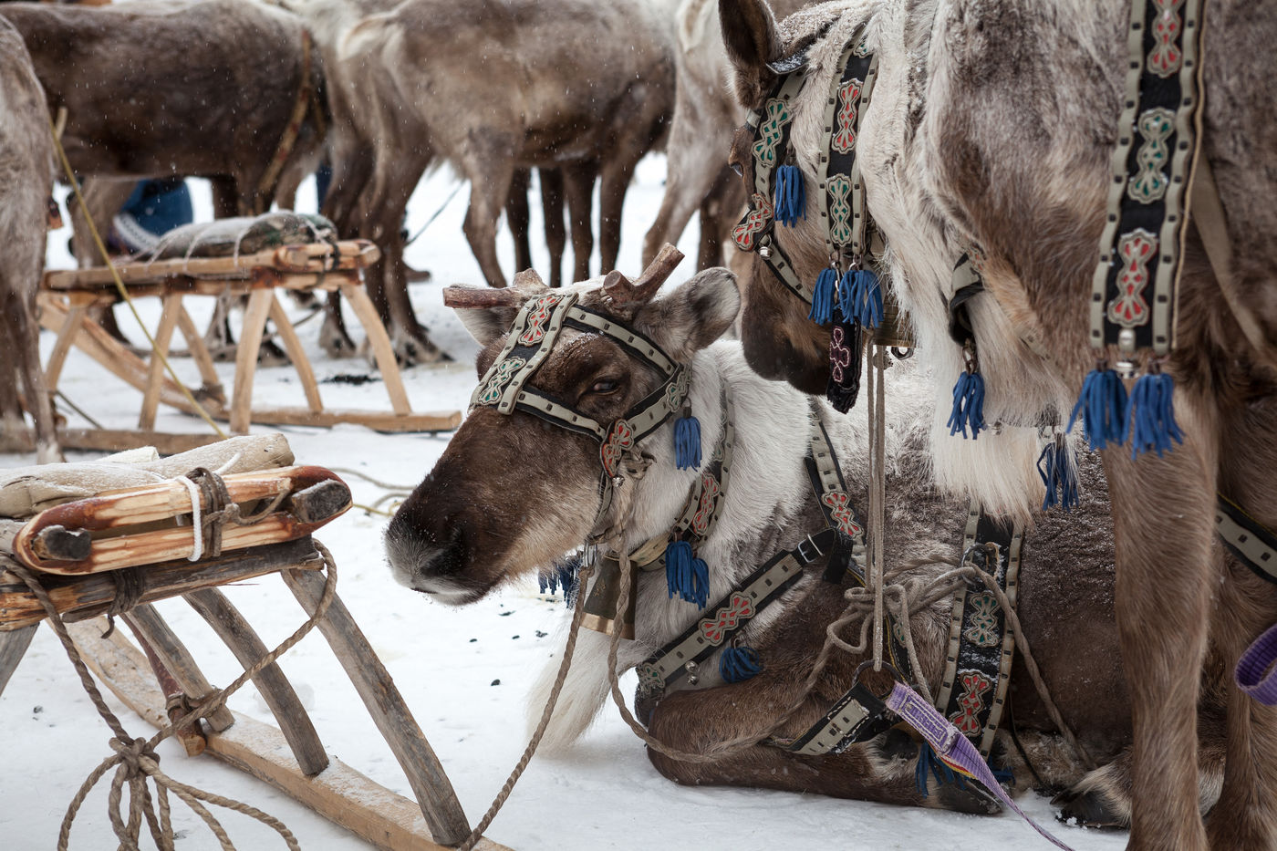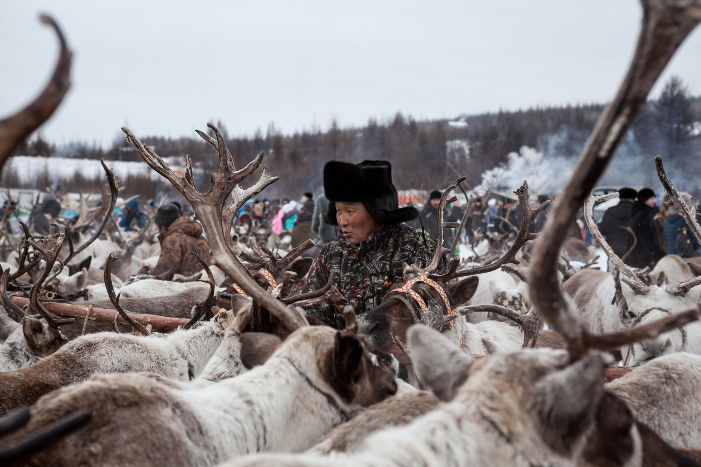 In March, on the frozen river from the village of Iengra, runs a unique event where barbecue, reindeer race and snowmobile ride bring together Russian and Evenk communities nearby. These peoples, with very different cultures, collide for a day and form a merry mix. The Evenk take care of their animals and prepare them for the competition, while the stands overloaded with meat and fish form gatherings where negotiations are swirling.