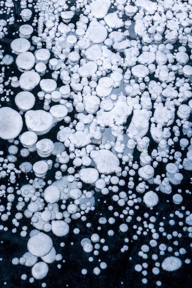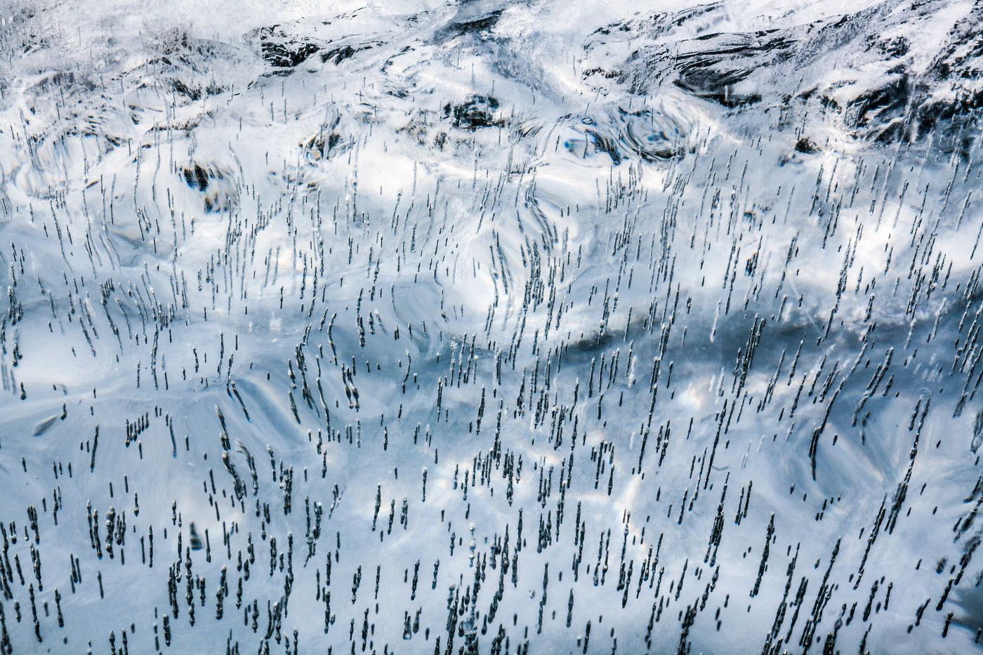 Propice à la macrophotographie, ces innombrables formations, prises dans l'épaisseur de la glace, changent au gré de la lumière. De l'aube au crépuscule, l'éventail des blancs, des bleus et des verts semble infini. Au printemps, moment de la débâcle, le manteau de glace se gorge d'eau et se brise. Des blocs de glaces dérivent à la surface jusqu'à la fonte absolue du lac.