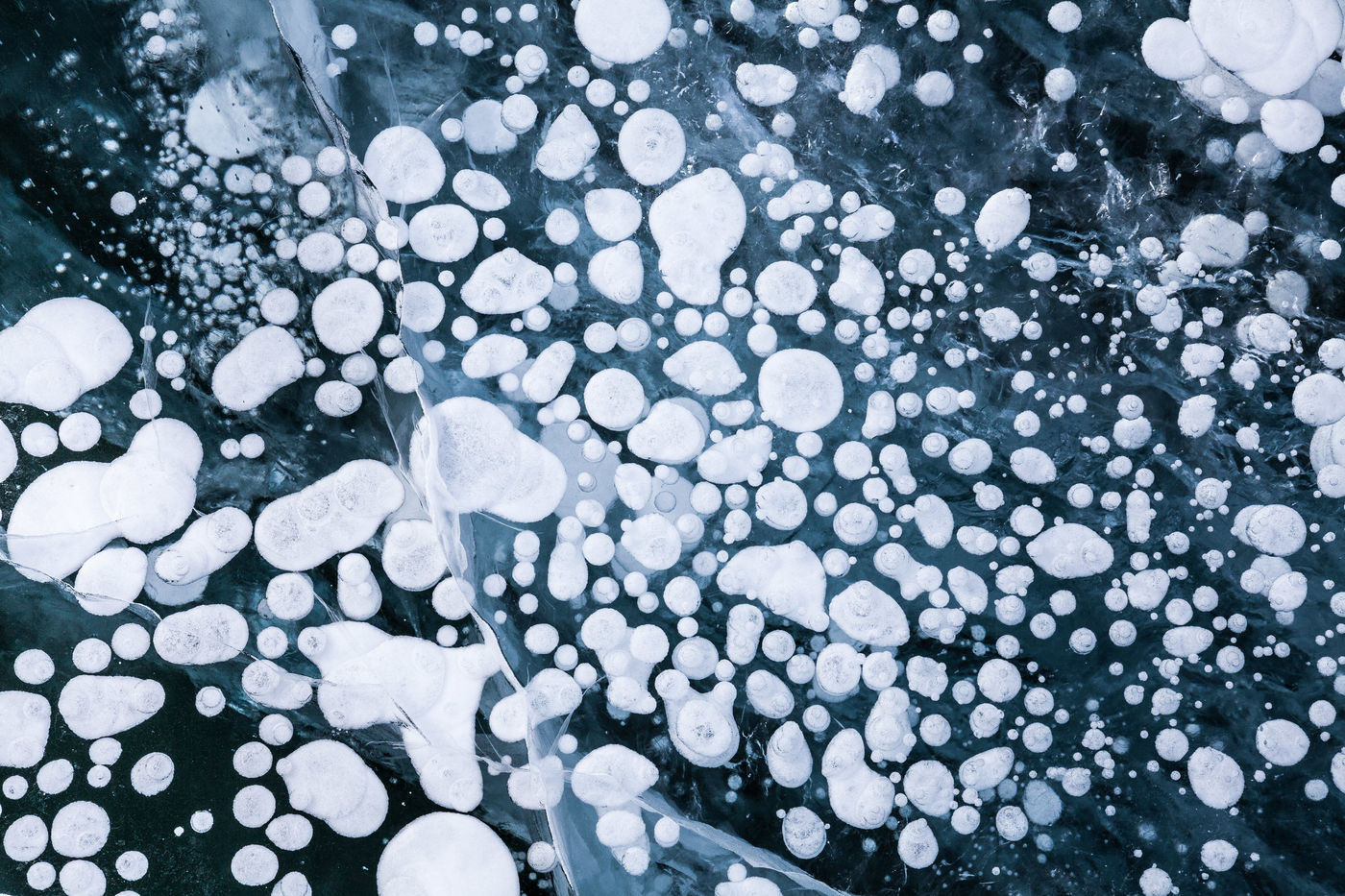 An explosion of ice. A myriad of air bubbles seeking the path to heaven. Baikal lake gives free rein to its art over more than 31,000 km by completely freezing each winter.