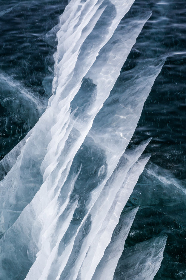 Un enchevêtrement de failles. Une explosion de glace. Une myriade de bulles d'air cherchant le chemin du ciel. Le lac Baikal donne libre court à son art sur plus de 31 000 km en gelant entièrement chaque hiver. Sous la surface, le tonnerre gronde. Le lac craque. Une plaque vient d'en percuter une autre. Des fissures ont déchirées la surface suite à la collision.