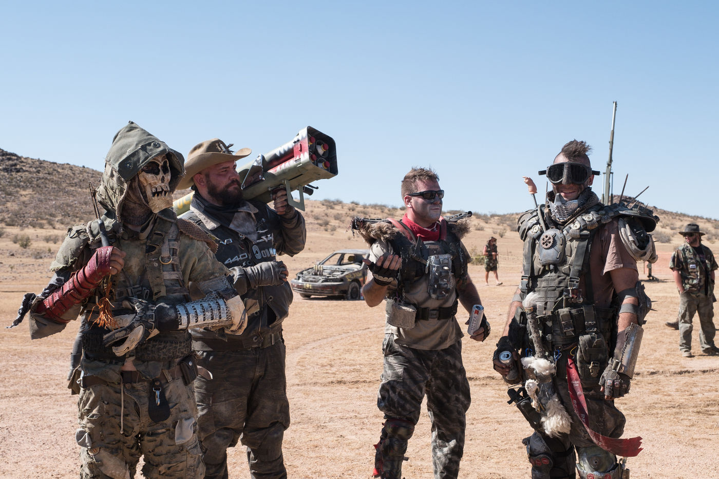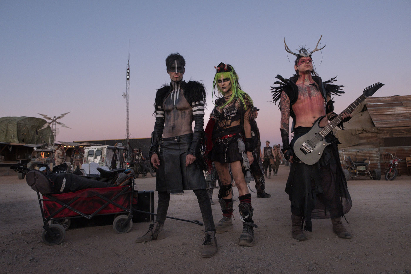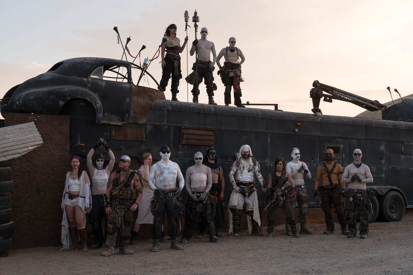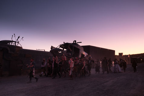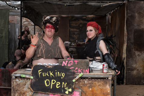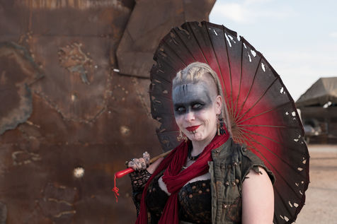 En plein désert du Mojave, à 1h30 de Los Angeles, une ville éphémère vient de sortir du sable. Des constructions en tôle rouillées jouxtent de grandes tentes en toile beige recouvertes de filet en camo militaire. D'étranges véhicules bardés de pics et d'armes en tout genre s'avancent lentement dans les allées. Une foule de gens dignes d'un film de science fiction s'écarte pour les laisser passer. Bienvenue à Wasteland ! Le plus gros festival post-apocalyptique au monde qui dure 5 jours et réunit 4300 personnes pour sa 10ème édition. Des fans de Mad Max venus de toute la planète s'y retrouvent tous les ans, à la fin du mois de septembre.