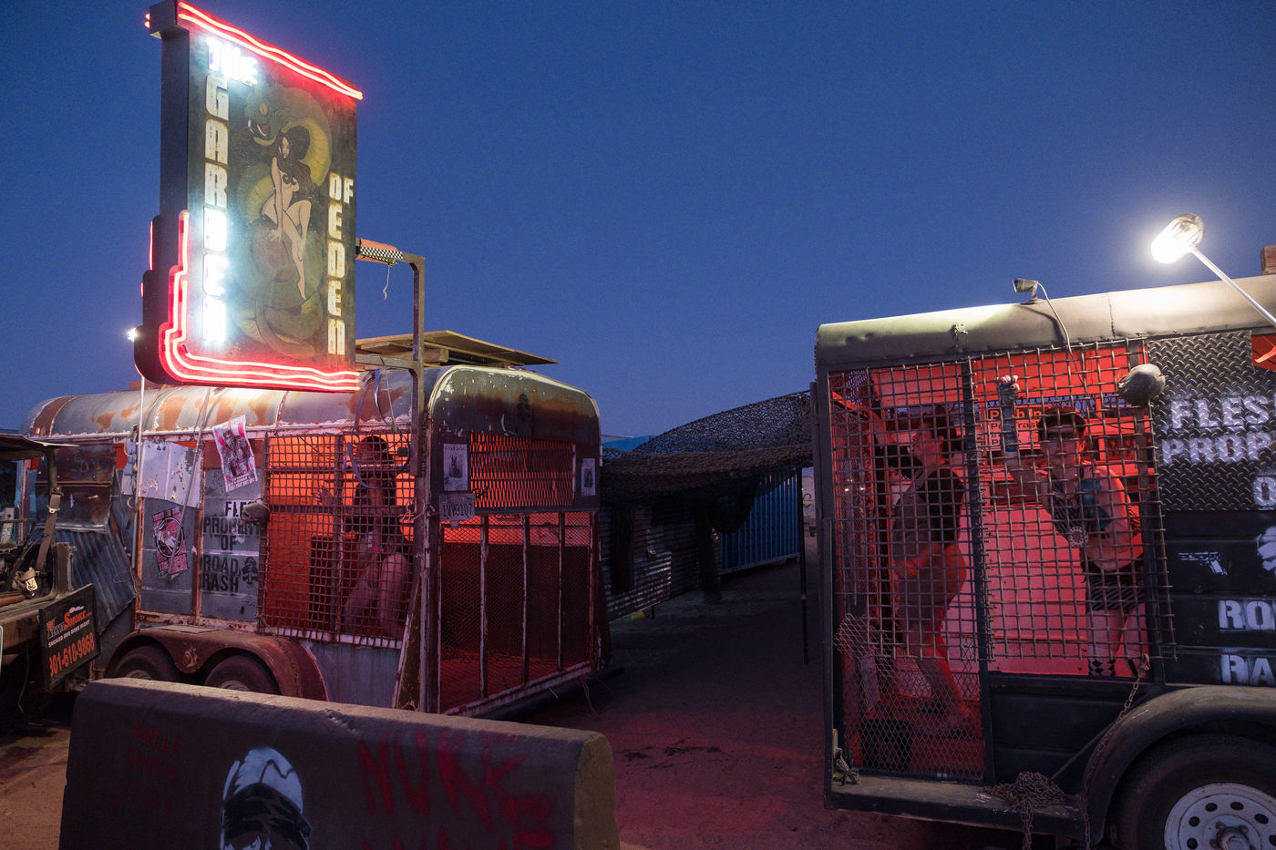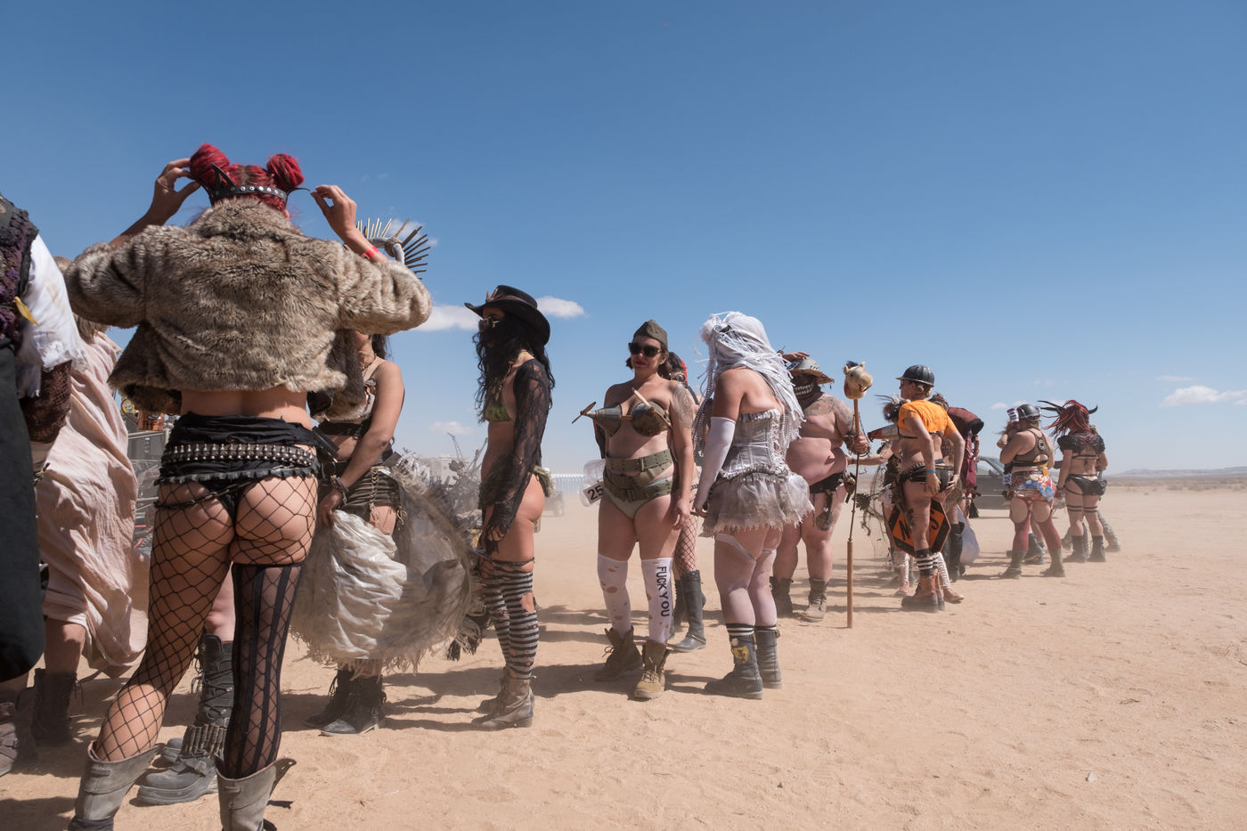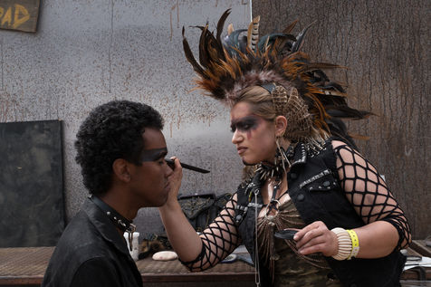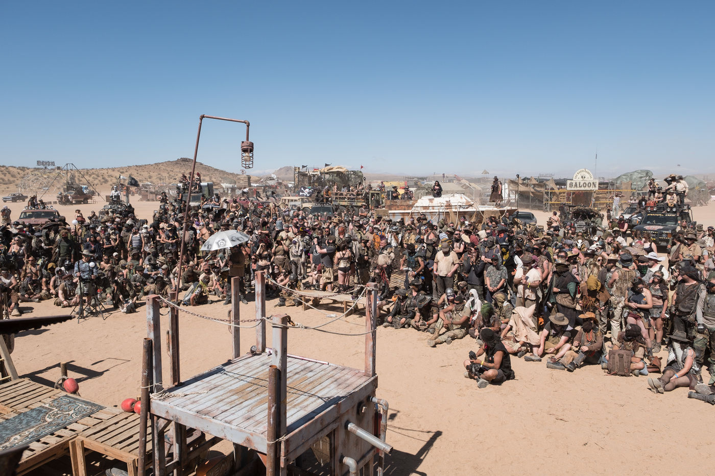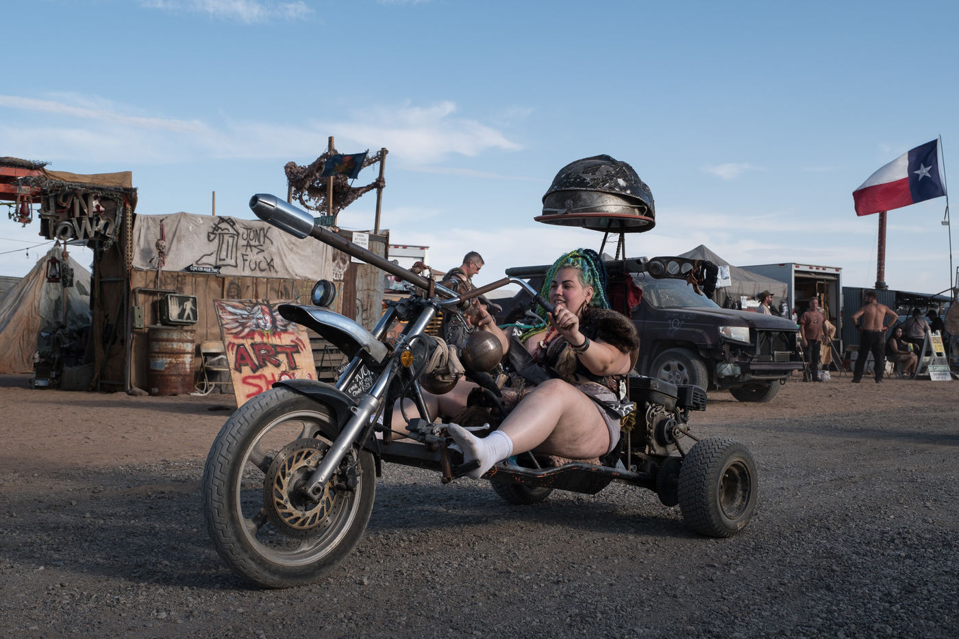 En plein désert du Mojave, à 1h30 de Los Angeles, une ville éphémère vient de sortir du sable. Des constructions en tôle rouillées jouxtent de grandes tentes en toile beige recouvertes de filet en camo militaire. D'étranges véhicules bardés de pics et d'armes en tout genre s'avancent lentement dans les allées. Une foule de gens dignes d'un film de science fiction s'écarte pour les laisser passer. Bienvenue à Wasteland ! Le plus gros festival post-apocalyptique au monde qui dure 5 jours et réunit 4300 personnes pour sa 10ème édition. Des fans de Mad Max venus de toute la planète s'y retrouvent tous les ans, à la fin du mois de septembre.