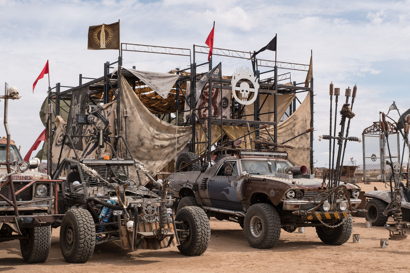In the middle of the Mojave Desert, 1.5 hours from Los Angeles, an ephemeral city has just emerged from the sand. Rusty sheet metal constructions adjoin large beige canvas tents covered with military camo netting. Strange vehicles clad with picks and weapons of all kinds slowly roll in the aisles. A crowd of people worthy of a science fiction film steps aside to let them pass. Welcome to Wasteland! The biggest post-apocalyptic festival in the world which lasts 5 days and brings together 4300 people for its 10th edition. Mad Max fans from all over the world meet there every year at the end of September.