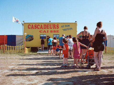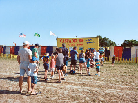 La roulotte aux couleurs vives vient d'ouvrir son guichet. Une flopée de vacanciers avec de jeunes enfants aux yeux émerveillés s'attroupe pour obtenir un ticket. Des carcasses de voitures aplaties jonchent le champ qui les entourent.