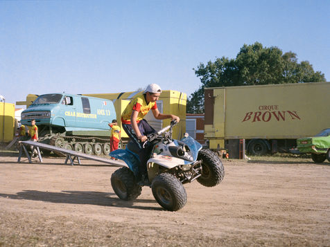 Every day of the week, except Monday, which is devoted to promotional signage, vehicles are tumbling or crumpling sheet metal. The show lasts an hour and a half and the public must be covered in case of an accident. For this, they pay a consequent fee but they are not covered because insurance companies consider their activity too risky. To control what they do, the ground must be perfectly dry. That's why the Monster Truck show season is so short. Fortunately, Helmout and his family have more than one trick up their sleeve. From September to June, they swap their roaring machines for a red nose, juggling balls and a unicycle. The Hell Drivers thus become the "Brown" circus.