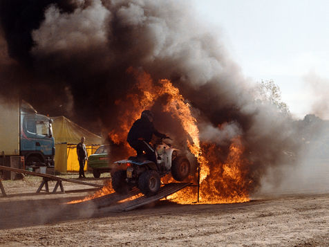 Ses trois fils illustrent bien ses propos en participant tous à leur façon. Le plus jeune, Sergueï, 5 ans à peine, fait pétarader son mini quad pour vendre des drapeaux au public. Tandis que Killian, 14 ans, à califourchon sur sa bécane, saute sans hésiter dans une arche de feu. Les cascadeurs, de moins en moins nombreux, s'apprennent les ficelles du métier de père en fils. Selon Fredo, il ne resterait plus que 25 troupes de cascadeurs en France, comptant chacune de 10 à 15 personnes. Auparavant, ils étaient itinérants mais avec l'augmentation du prix de l'essence et le désintérêt des touristes, il devient de plus en plus difficile de joindre les deux bouts. Pour faire des économies, ils ont décidé de ne pas se déplacer cette année.