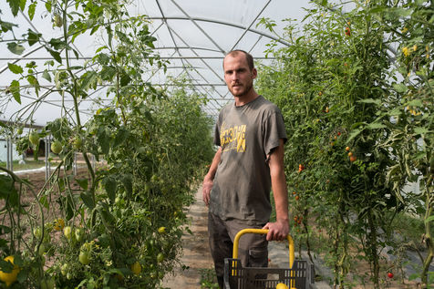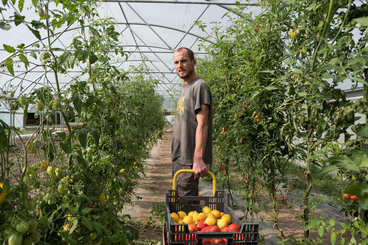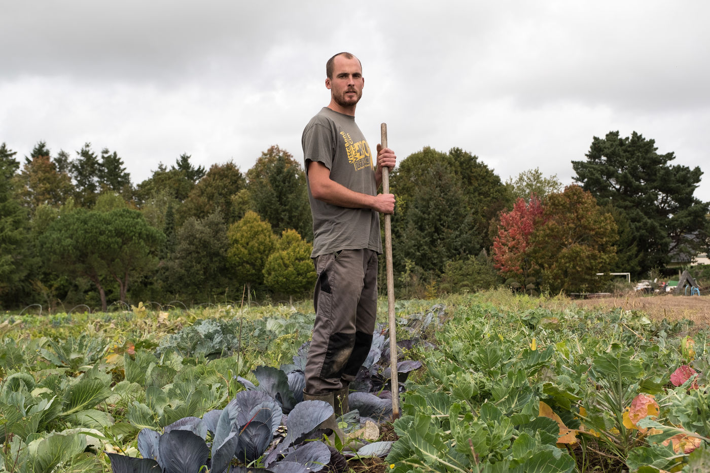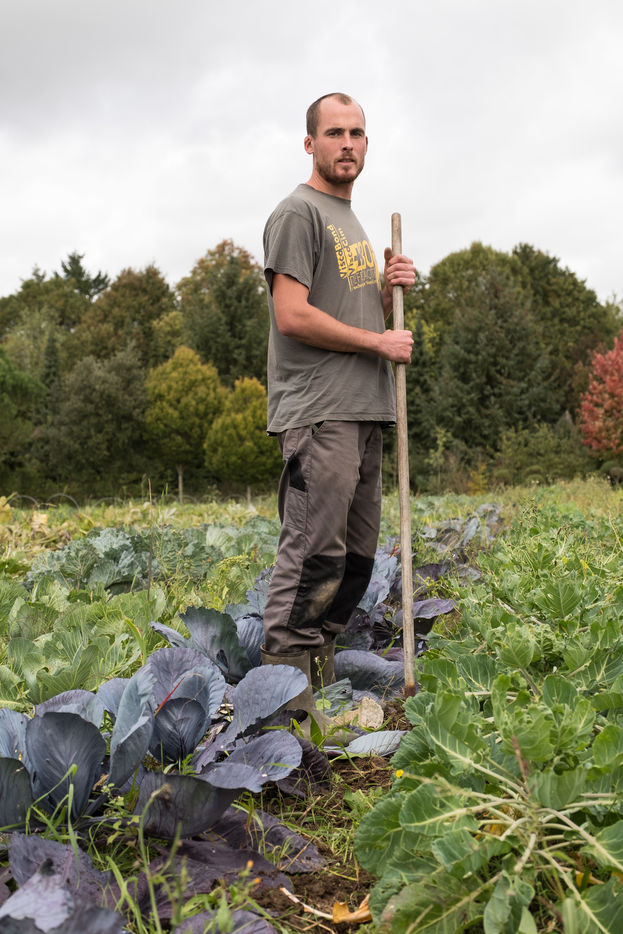 Portraits de Ronan Bétin, maraîcher pour une cantine scolaire à Vannes, France.