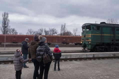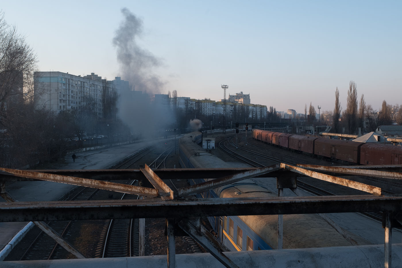 Refugees taking the 5:20 p.m. train to Bucharest at Chisinau station, Moldova.