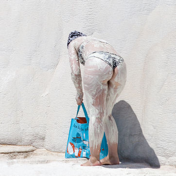 A being draped in black stares a few seconds this individual wearing a colorful shorts who paddles in the crystal clear water. This same one laughs about a skewer of humanoids, terrorized by the sun, who pull on their sleeves and frantically replace caps and umbrellas. Them, observe a big guy, covered with clay poultices, fumbling not to wallow masterfully on the slippery floor.