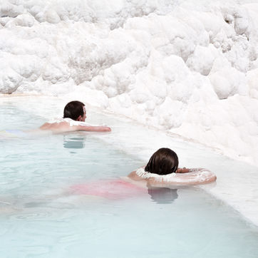 In this magical place in the south-west of Turkey, a hot spring flows from the bowels of the mountain. On contact with the air, water turns into calcium carbonate and creates a magical landscape known as Pamukkale.
