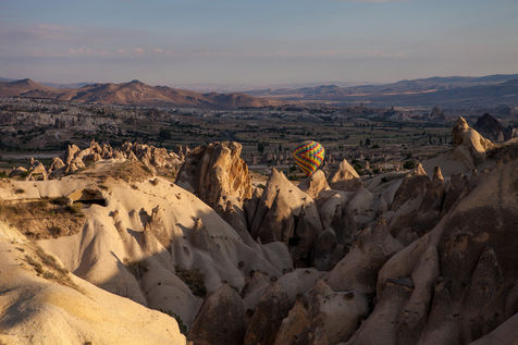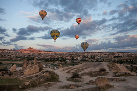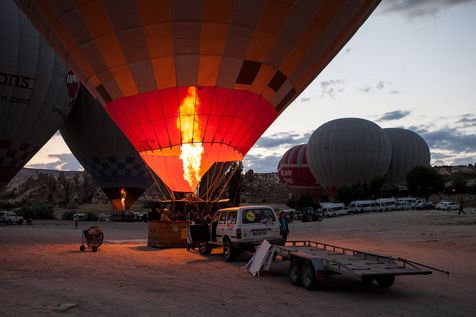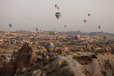 L'aube commence à poindre en Cappadoce, prélude d'une féérie quotidienne. Dans quelques minutes, des dizaines de montgolfières prendront leur envol. Imposantes et hautes en couleurs, durant une heure, elles évolueront en surplombant villages et formations rocheuses naturelles exceptionnelles. Ce ballet digne d'un conte de fée rend les paysages de cette région encore plus surnaturels.