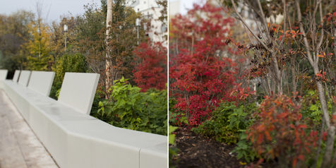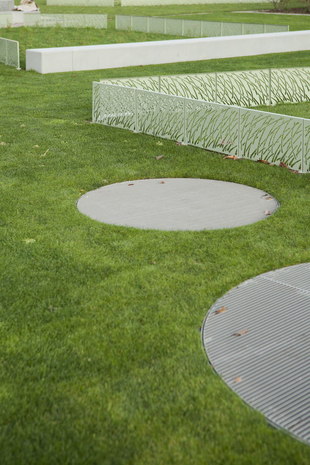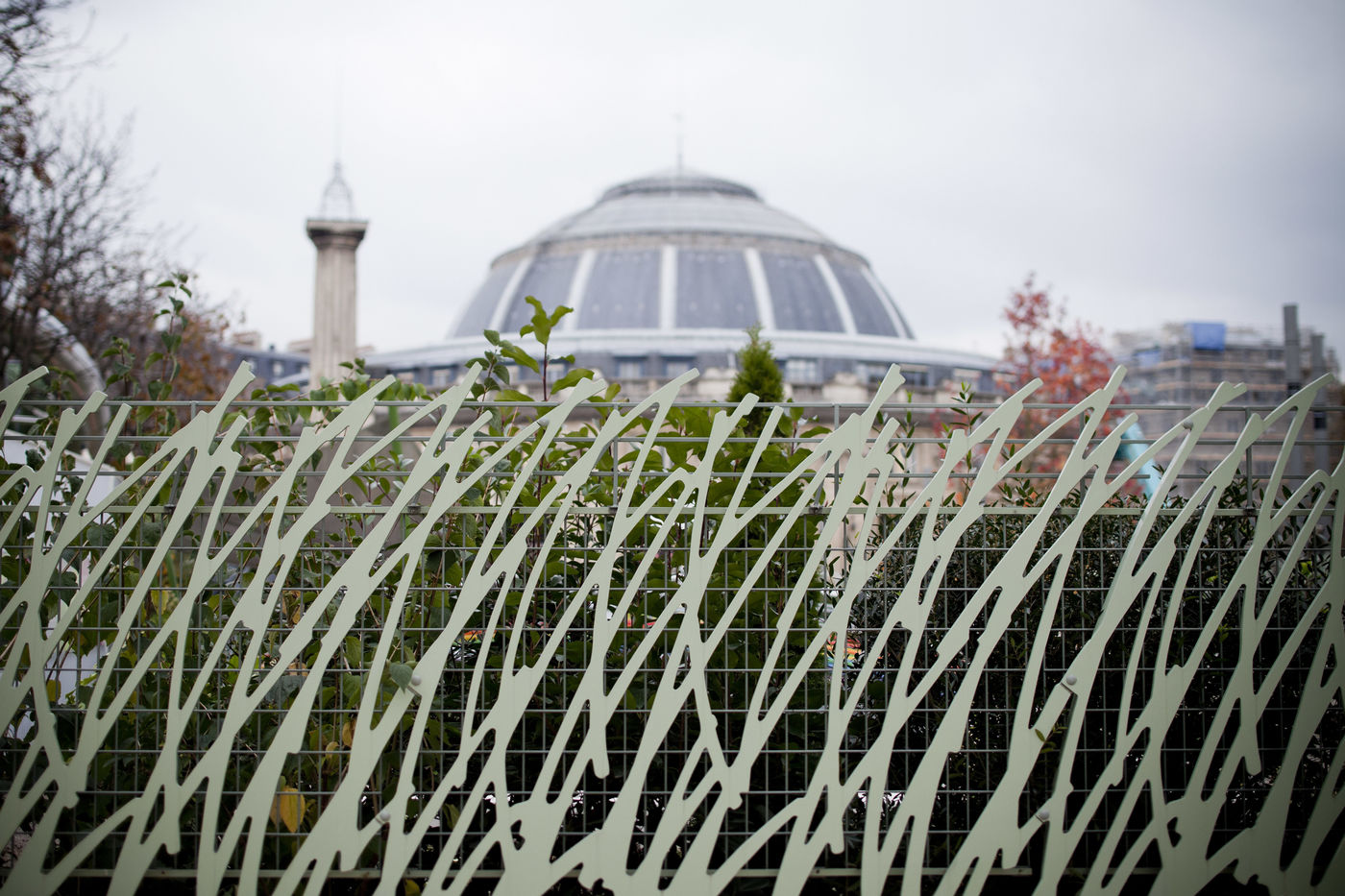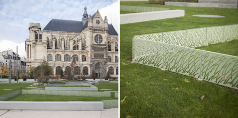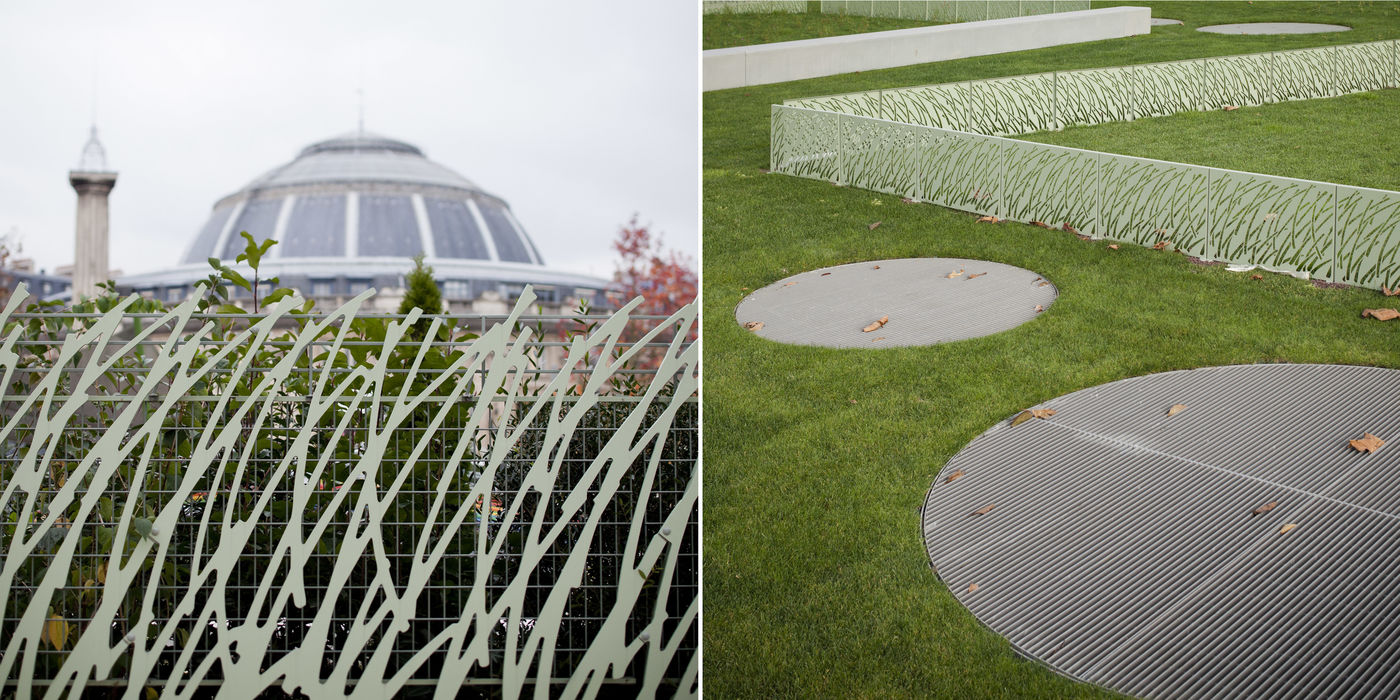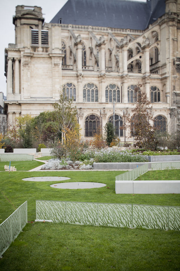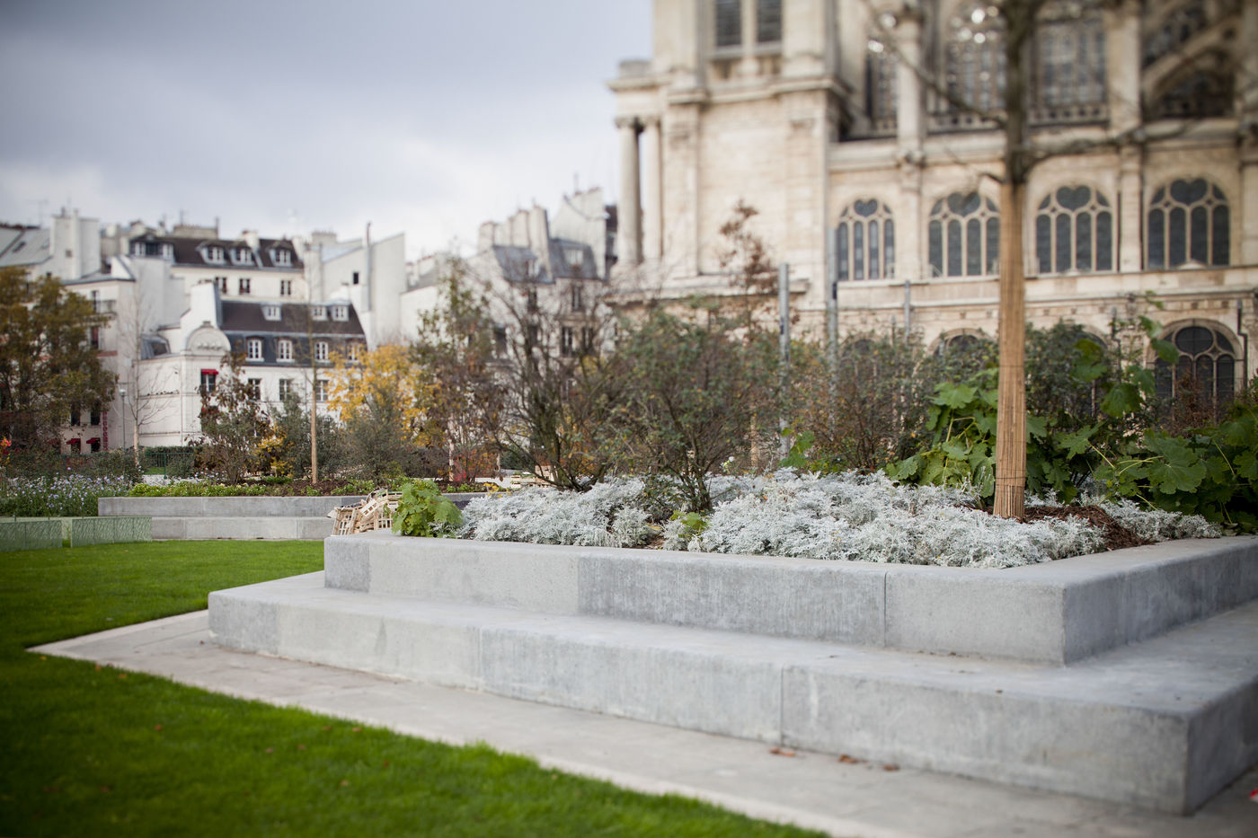 chantier et réaménagement des Halles de Paris. livraison et ouverture au public du jardin Nelson Mandela, partie nord-ouest. SEURA architectes - Florence Bougnoux, Jean-Marc Fritz et David Mangin. Philippe Raguin paysagiste. décembre 2013.