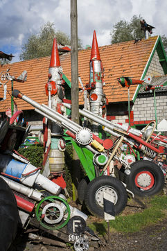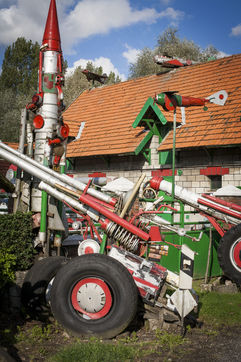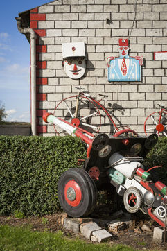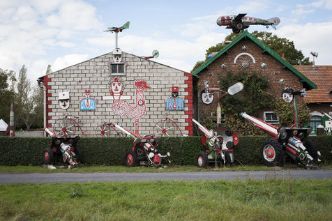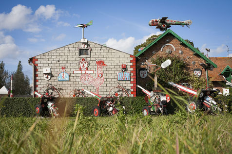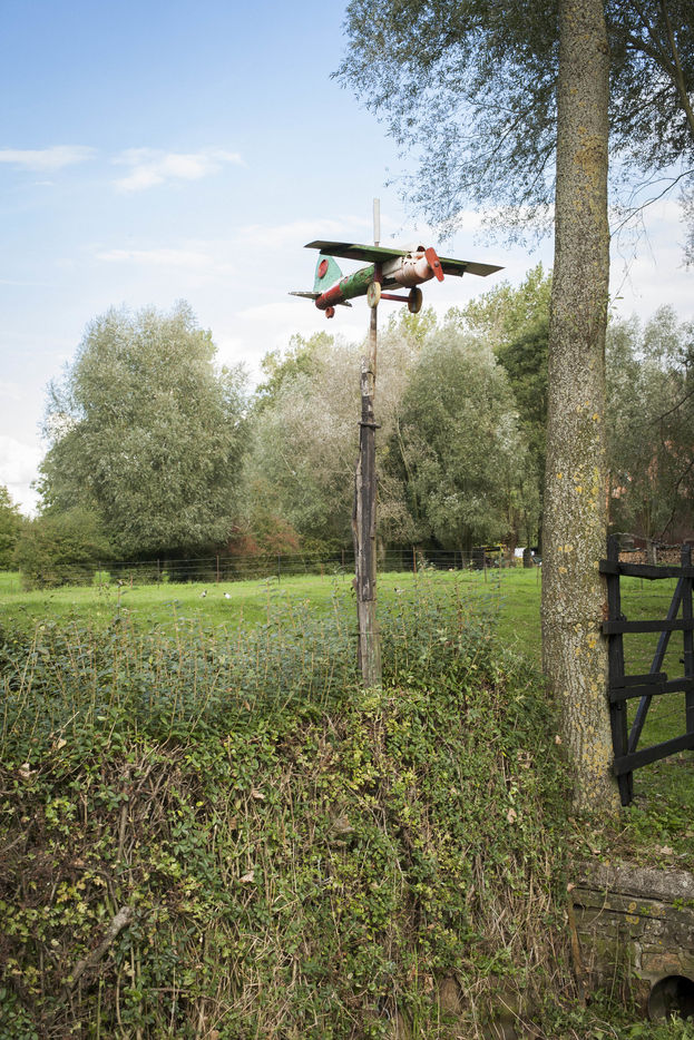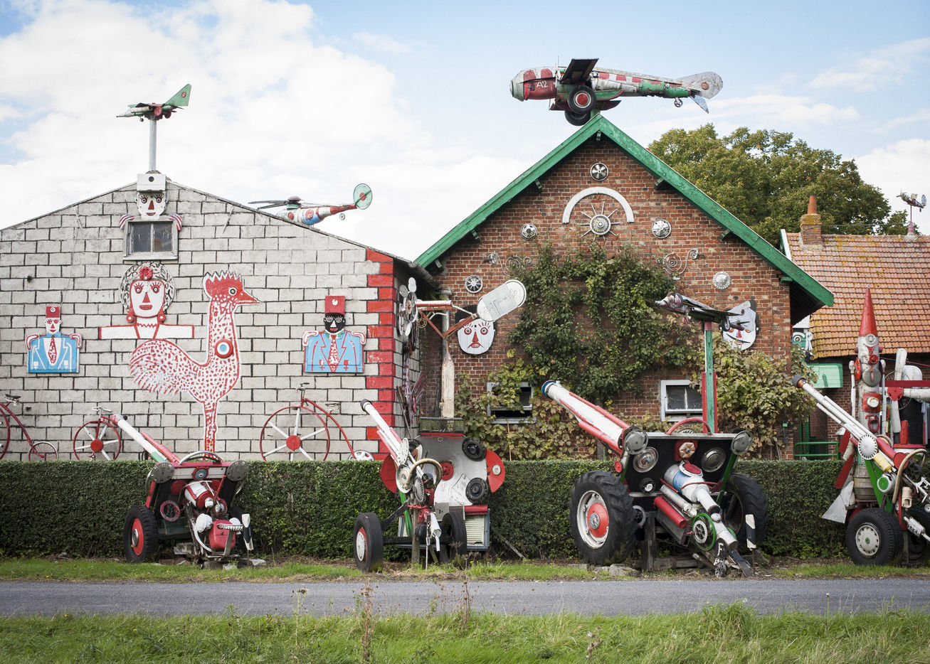 César Vanabelle tient à le préciser. Comme son aîné, il a connu deux guerres mondiales, mais ne les a pas faites. Il n'est même jamais monté dans un avion. C'est lui qui a pris l'habitude de raconter l'histoire. Arthur, lui, en a un peu marre. Alors César récite : « Tout a commencé par une girouette en forme d'avion sur le toit. Comme on était cultivateurs, on avait besoin de voir la direction du vent. Quand il vient du sud-ouest, c'est qu'il va pleuvoir. Puis, il a voulu en faire plus. Il en a mis un peu partout. Les premiers datent des années 1960. Il ne voulait pas fabriquer de voitures, il trouvait qu'il y en avait déjà assez. » On le comprend sans peine. Cette autoroute apparue dans les années 1970, alors qu'il habitait déjà cette maison avec son frère et sa soeur, avait de quoi l'en dégoûter.
