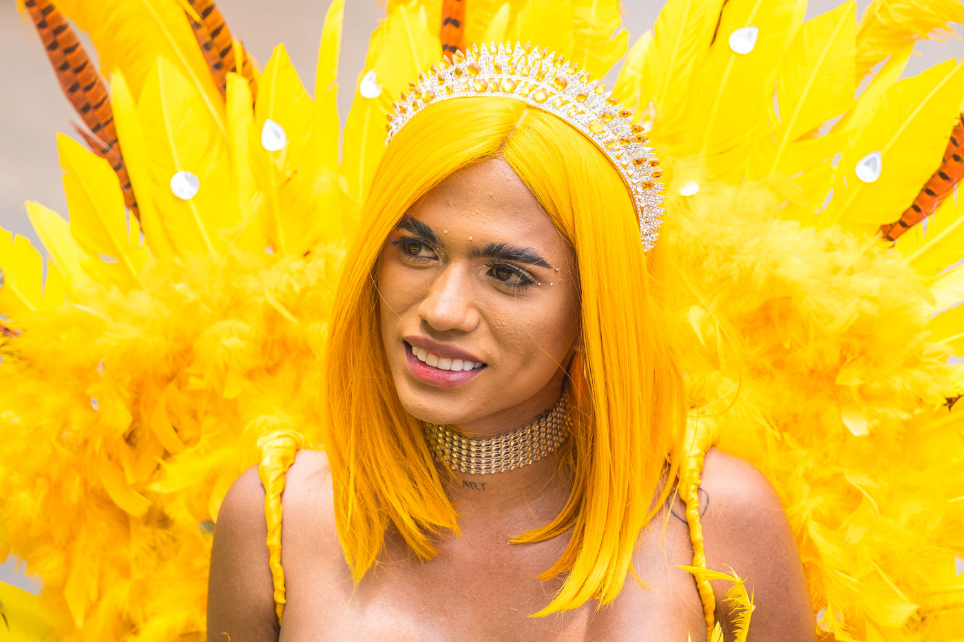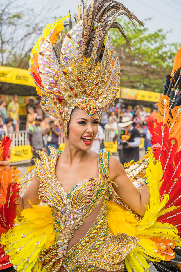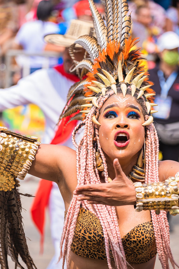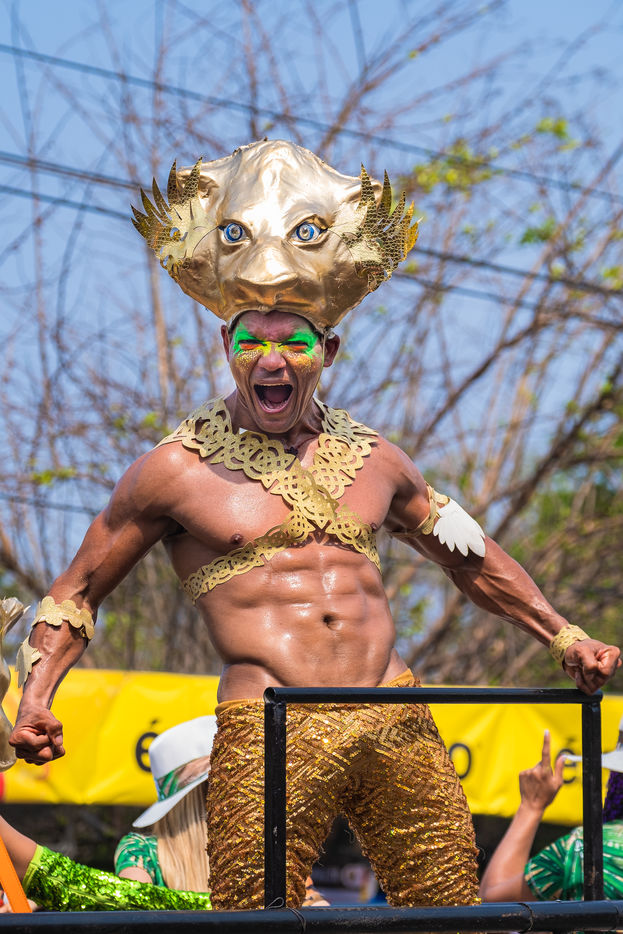 Portrait of a dancer in the carnival of Baranquilla, Colombia, the second largest carnival in South America. Thousands of amateurs and professionals pay tribute to traditional dances such as the danza del caiman, Garabato, Marimondas, congo or caiman.