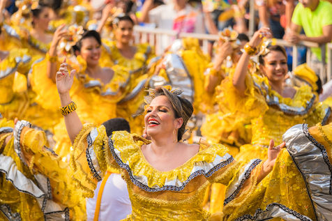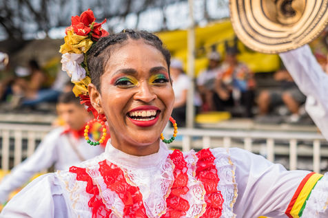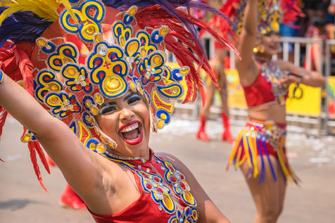 La joie est l'energie la plus significative dans le carnaval de Baranquilla, en Colombie, le deuxième plus grand carnaval d'Amérique du Sud. Des milliers d'amateurs et professionnels rendent hommage aux danse traditionnelles comme la danza del caiman, Garabato, Marimondas, congo ou caiman.
