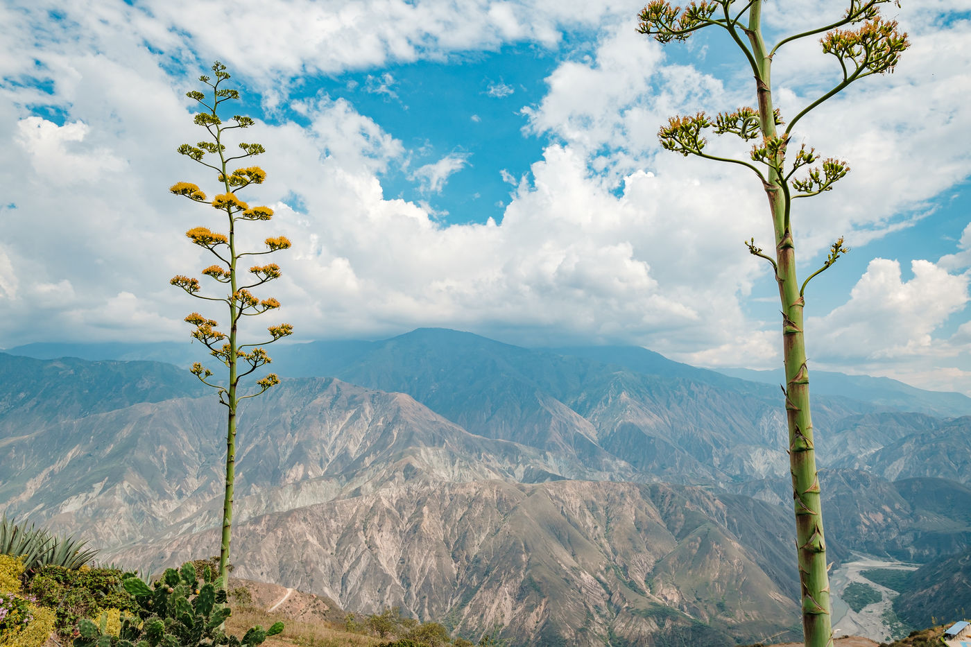 The Chicamocha Canyon is one of the natural monuments of Colombia. It is the second largest canyon in the world with a depth of 2000 meters and a length of 230 km. At its highest point there is a sculpture in homage to the Santanderans who fought for their independence.