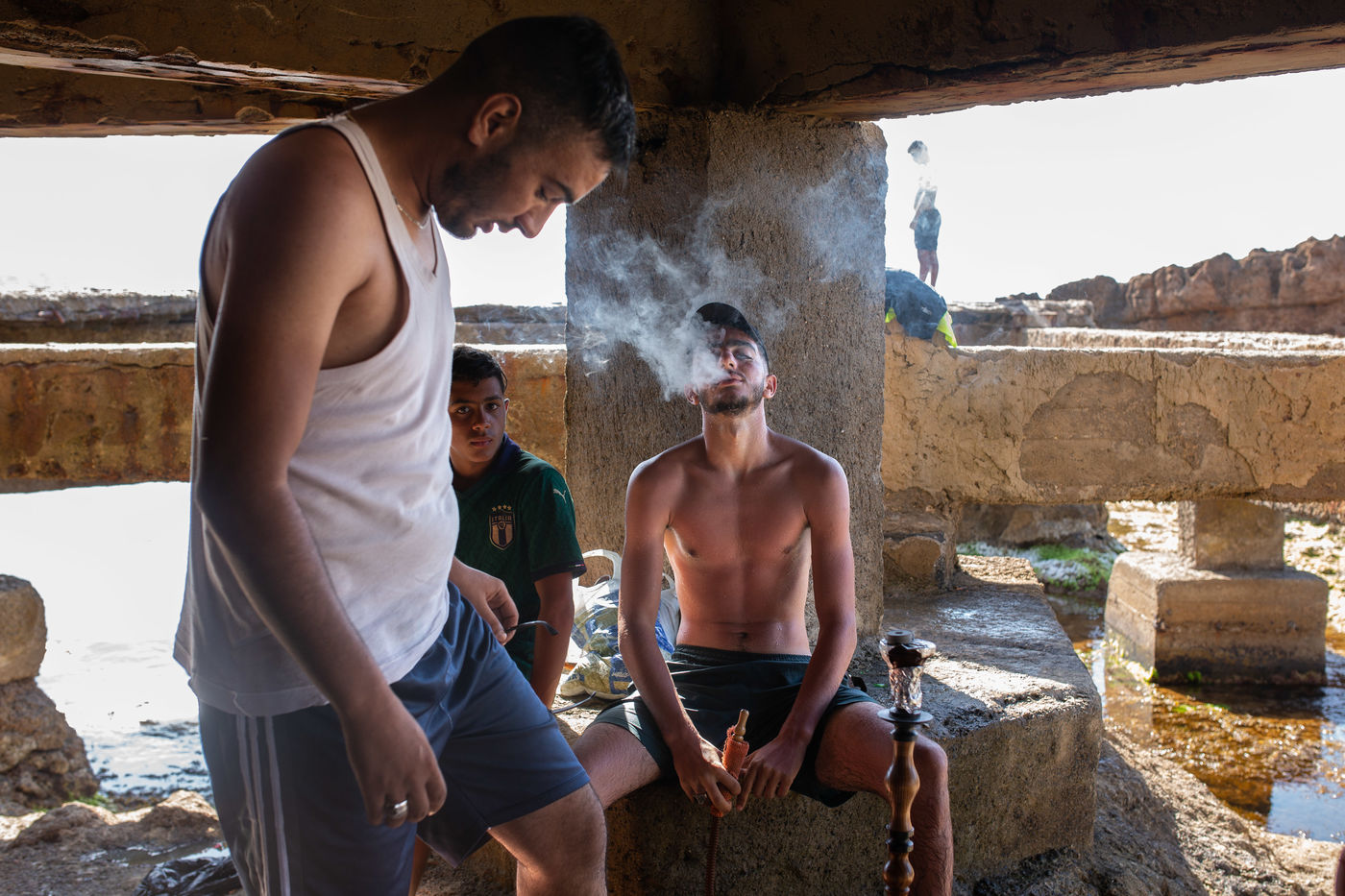 They come from the Soummam Valley in Kabylia, in part, others come from the interior of the country, the Highlands where the summer temperature beats all records in the Mediterranean basin. They are aged between 15 and 25 years. A youth that is thirsty to live, to express itself, to be recognized, estimated, valued, taken in charge. They rent buses and trucks to reach the "Platform", the carcass of a large building flirting with the sea in Boulimat, a seaside resort located in the department of Béjaia in Kabylia (200 km east of Algiers, Algeria). A project that should house a hotel-bar-restaurant and which was stopped by the public authorities during the Black Decade of the 1990s for lack of building permits according to residents. They flock there by tens in search of strong sensations, to the height of their frustrations born from the absence of leisure and spaces of multiform expressions all year long. This also comes for the first time after two long years of confinement, consequence of Covid-19. They have fun by putting their lives in danger, by throwing themselves into the water sometimes from a floor, sometimes from the upper terrace of the building in question. As for the sharp rocks that emerge from the water here and there and in the middle of which one dives, one does not make a fuss. Satisfying a certain need for escape is far more important. Then a moment of respite in the shade around a few beers, a Chicha and so much for the detritus and shards of bottles that litter each piece of this space that they have squatted to make their resort for a day. The discussions turn essentially around the prowess of the ones and the others in the art of the dive. Tomorrow is another day.