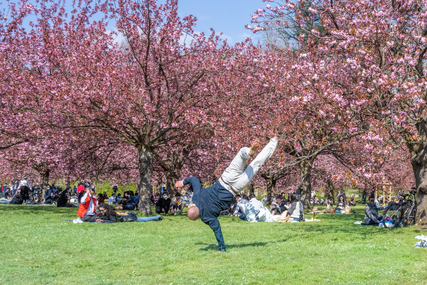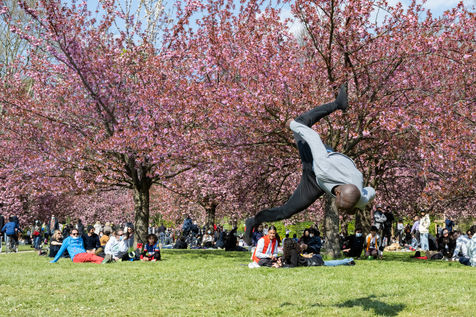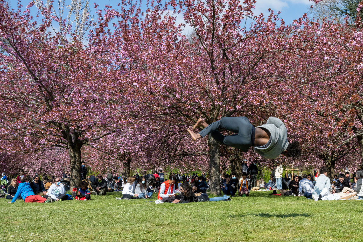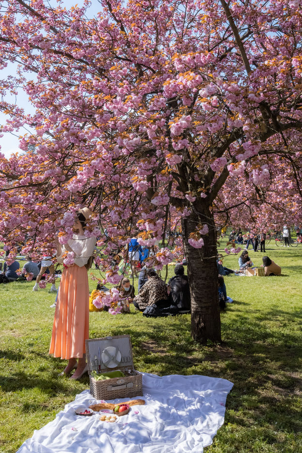 Beaucoup de monde pour profiter du spectacle des cerisiers en fleur au Parc de Sceaux.