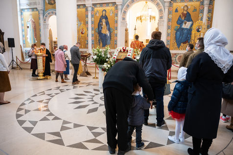 Unfortunately, the night services, in view of the curfew, were held behind closed doors in the Holy Trinity Cathedral.