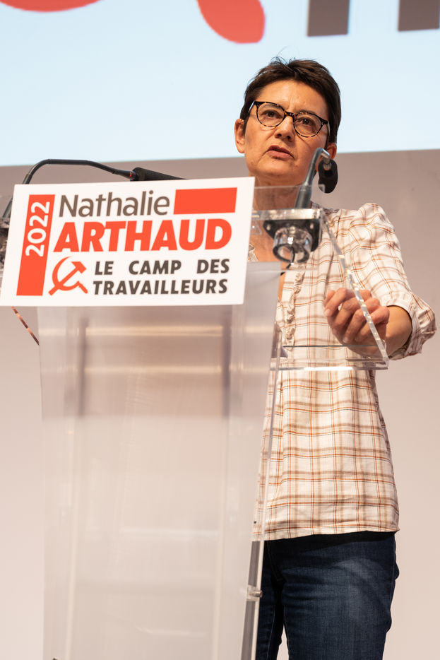 Nathalie Arthaud at the Mutualité
