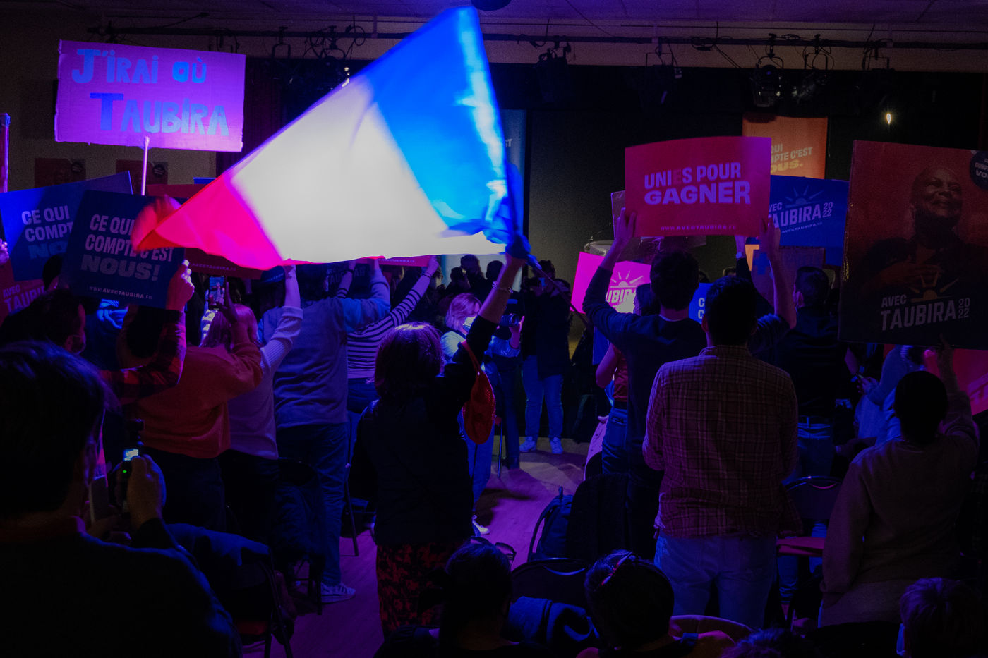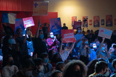 Christiane Taubira's campaign meeting in Créteil attracted a young audience, the JAT - Jeunesse Avec Taubira (Youth With Taubira). It must be said that the speaker knows how to have an effective speech: sexist and sexual violence, ecology, minimum income for young people... Some tackles also against the left which according to the candidate "only criticizes the Left" while advocating once again the union.