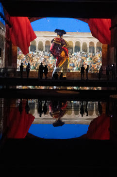 The Bassins des Lumières, opened in 2020 after Les Baux de Provence and Paris, is the third immersive exhibition space opened in France, and the largest: 12,000 m2 of projection space, 3,000 m2 of walking space.