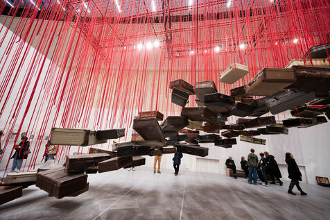 Chiharu Shiota est la première artiste exposée au Grand Palais depuis sa réouverture. Son exposition intitulée The Soul Trembles transporte le public qui peut déambuler à travers les fils des oeuvres monumentales de celle que les médias ont surnommée l'araignée.