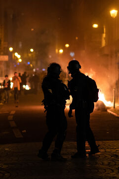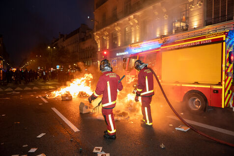 Firefighters and police forces on the evening of the March 23 demonstration