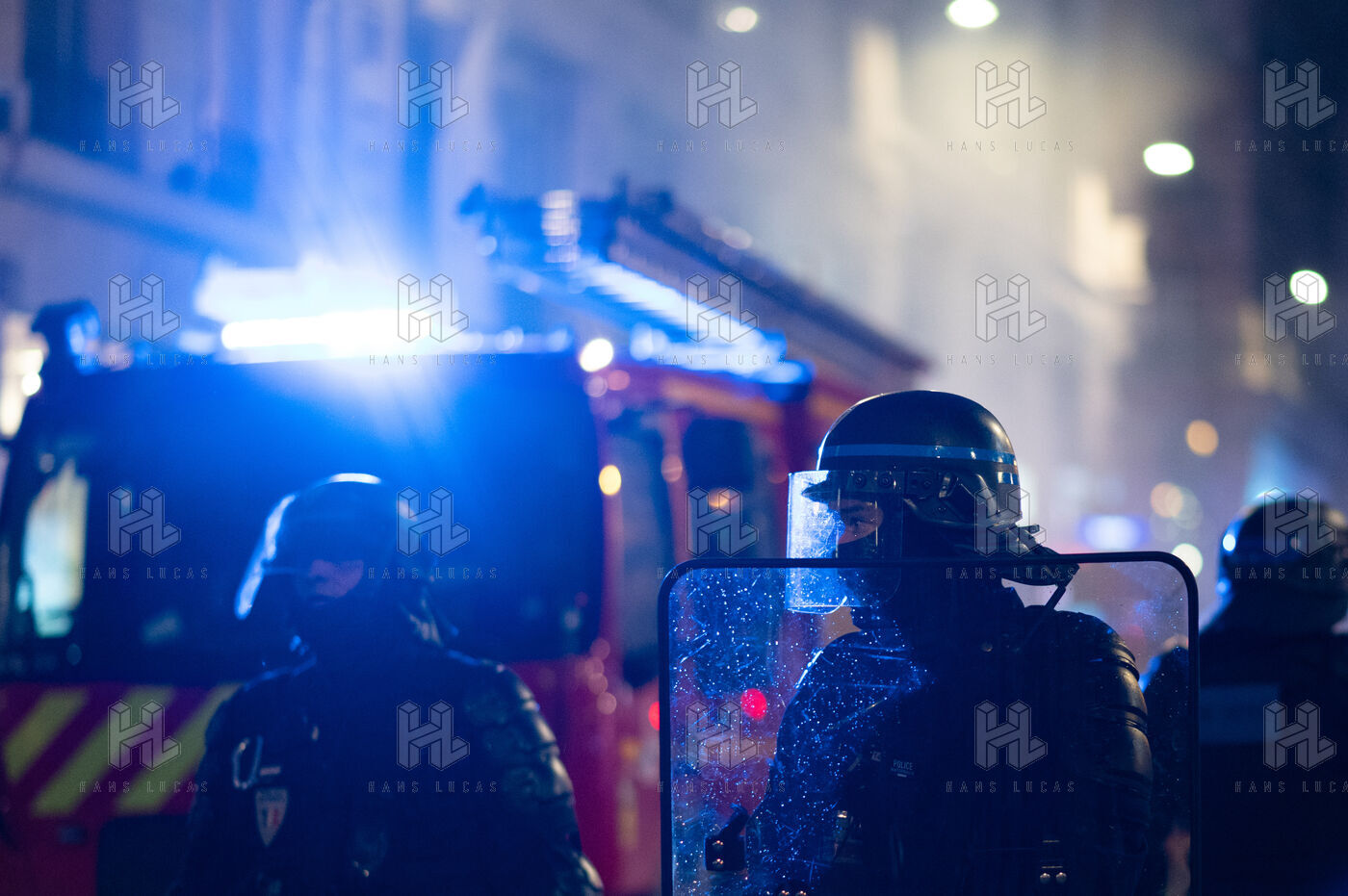 Firefighters and police forces on the evening of the March 23 demonstration.