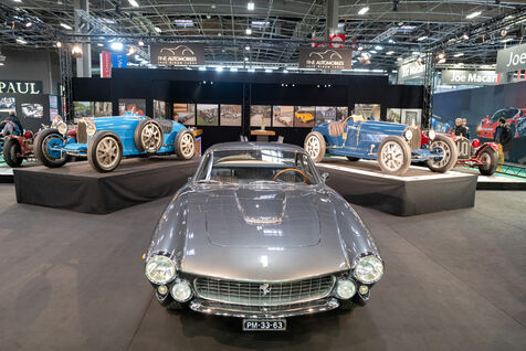 Illustration of the Retromobile show, a show bringing together vintage vehicles, taking place at the Porte de Versailles exhibition center.