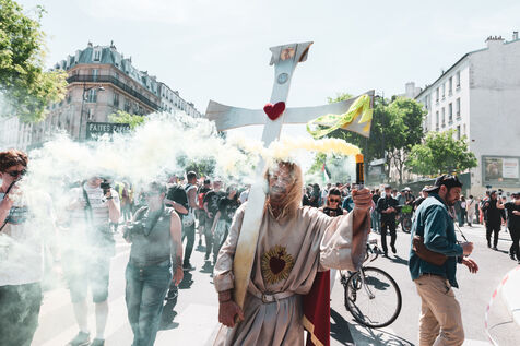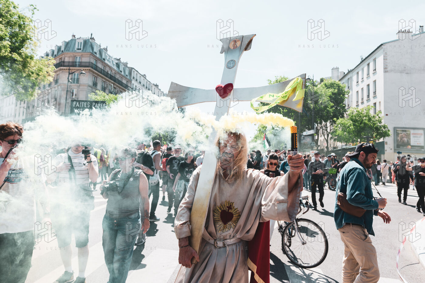Manifestation a l occasion de la journee nationale de mobilisation du 1er mai, fete des travailleurs, ici le cortege parisien, a Paris, France, le 1er mai 2025.