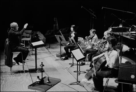 French composer and conductor Pierre BOULEZ rehearsing with the Ensemble Intercontemporain at the Cite de la Musique in Paris.