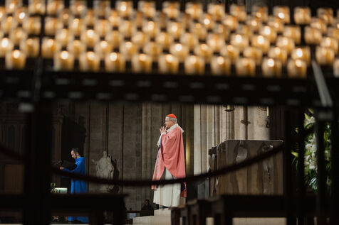 Andre vingt trois archevêque émérite de Paris photographié dans la Cathédrale Notre Dame de Paris et à Lourdes entre les années 2009 et 2013.