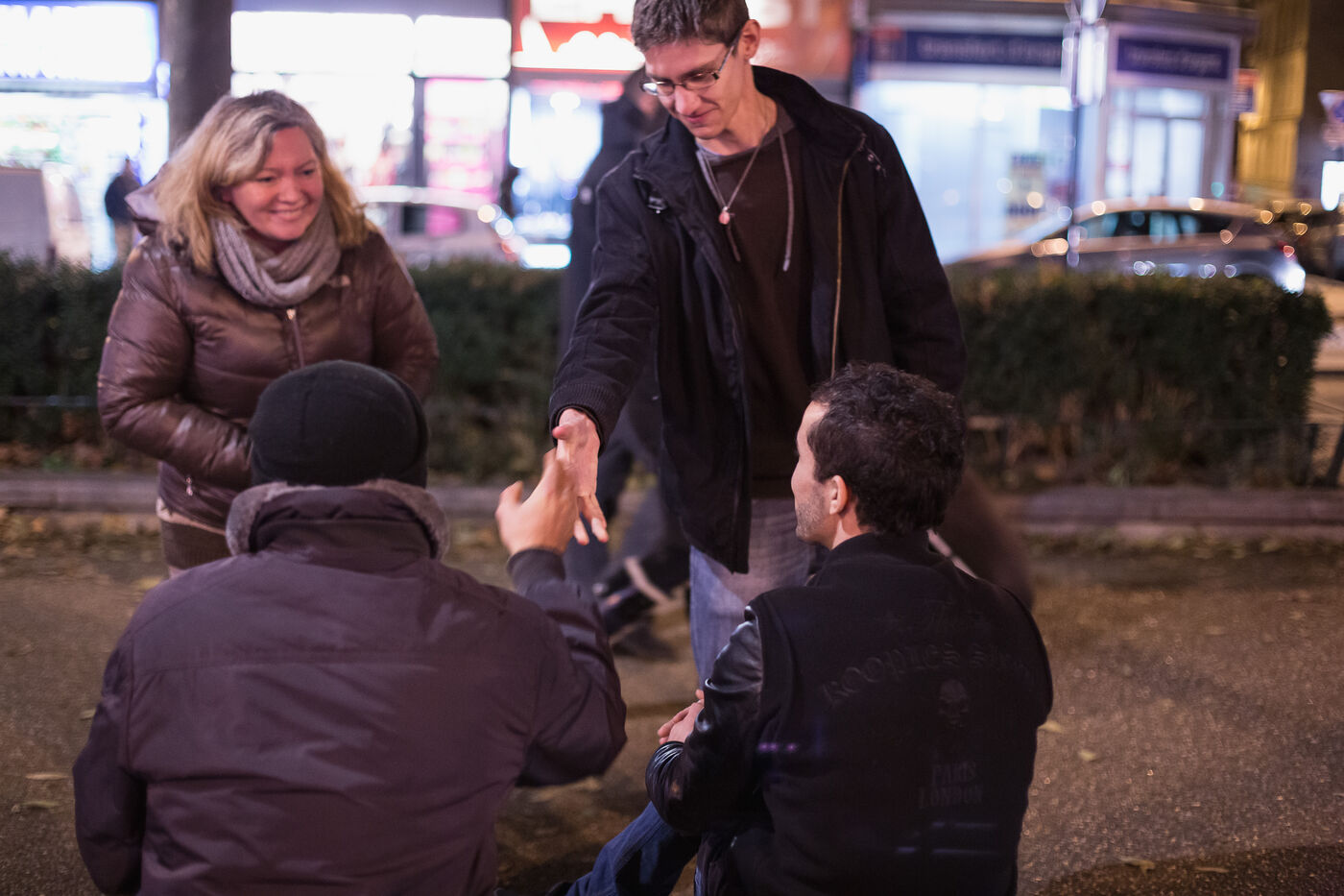 An evening of prayer at the Chapelle Sainte Rita and evangelism on Boulevard de Clichy in Paris.