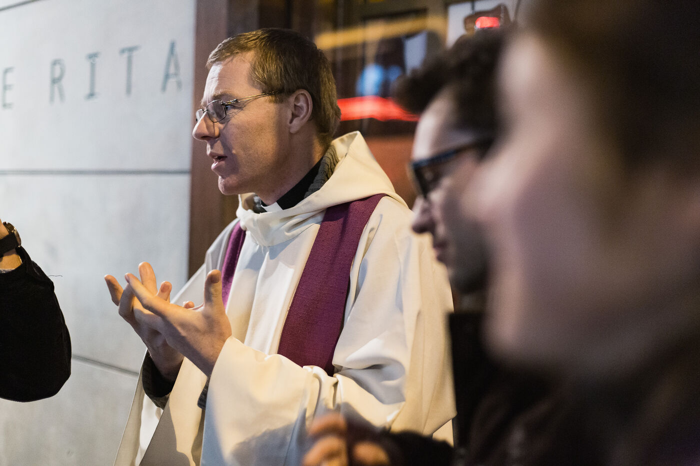 Soirée de prière à la Chapelle Sainte Rita et évangélisation Boulevard de Clichy à Paris.